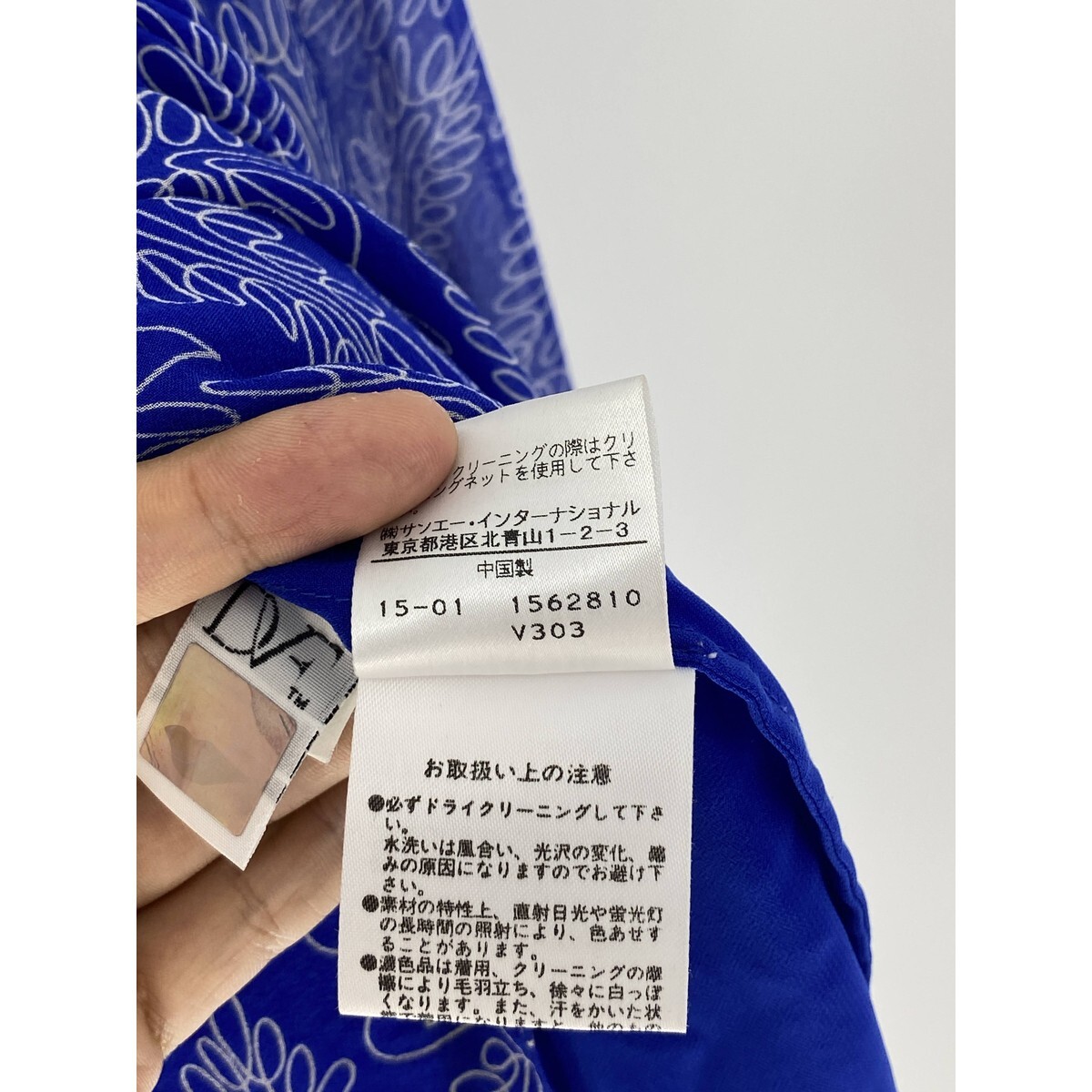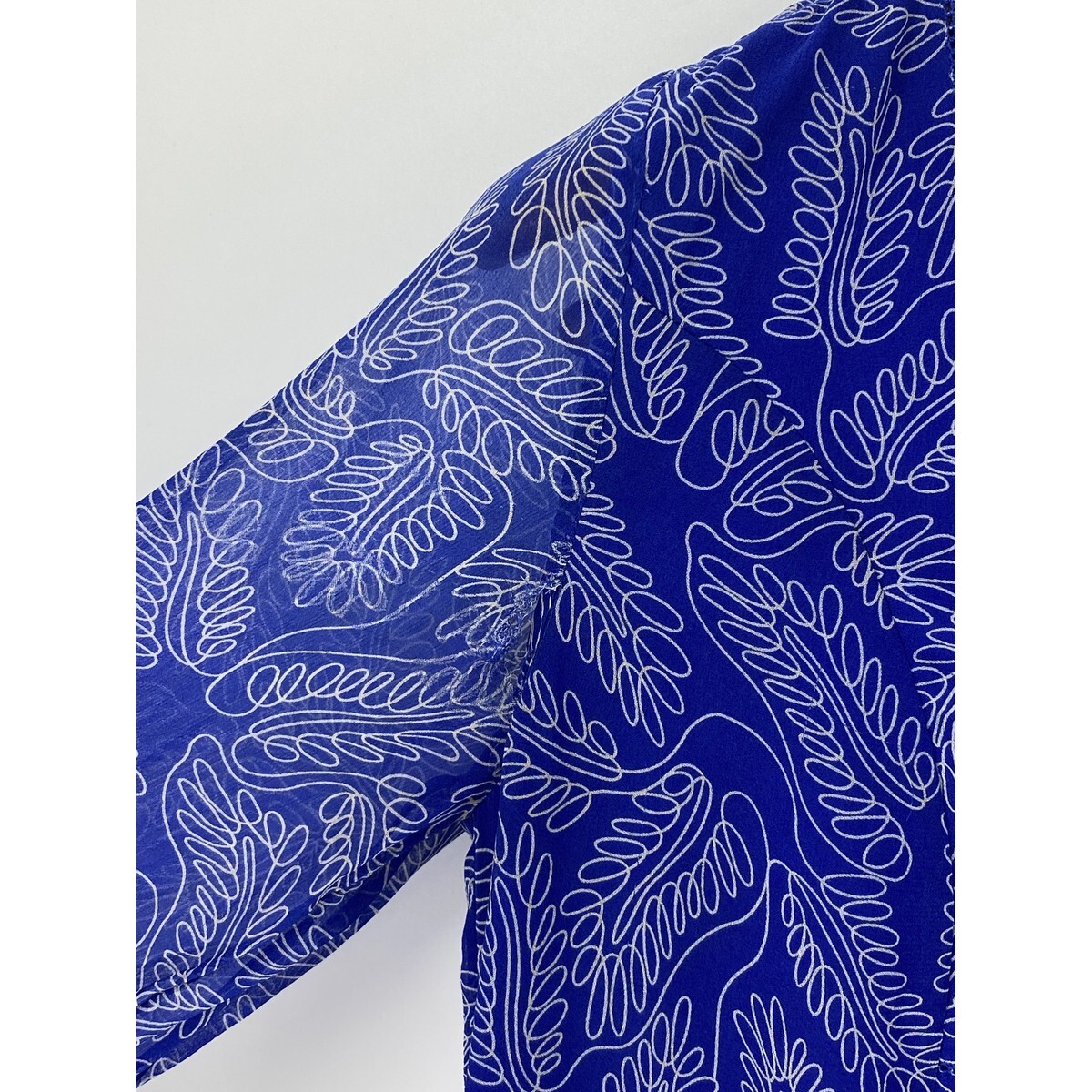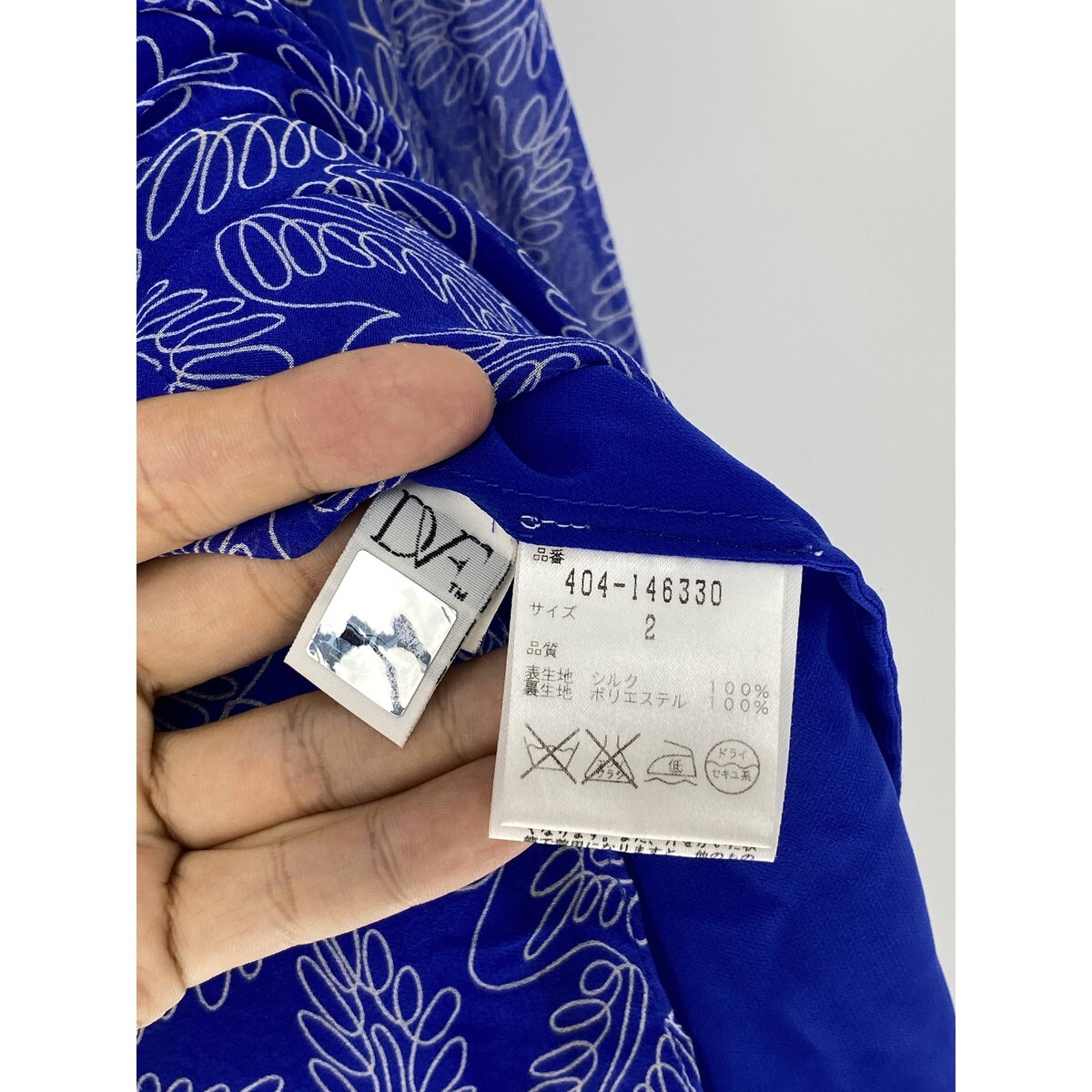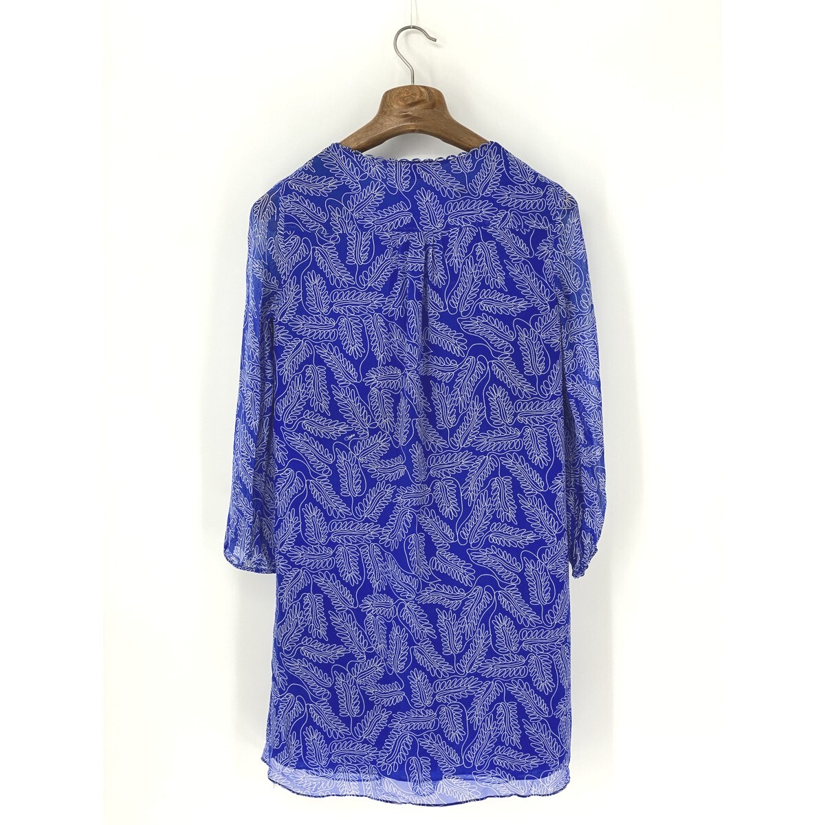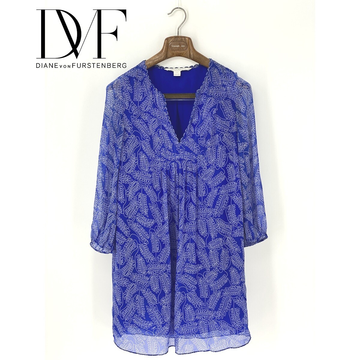 A9783/春夏 DIANE von FURSTENBERG ダイアン シルク100% ボタニカル柄 総柄 Vネック 長袖 ミニ ワンピース チュニック 2 M程 青 レディース