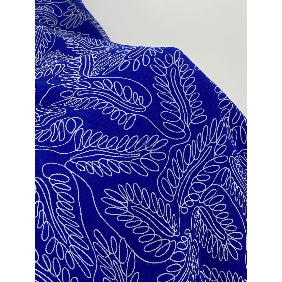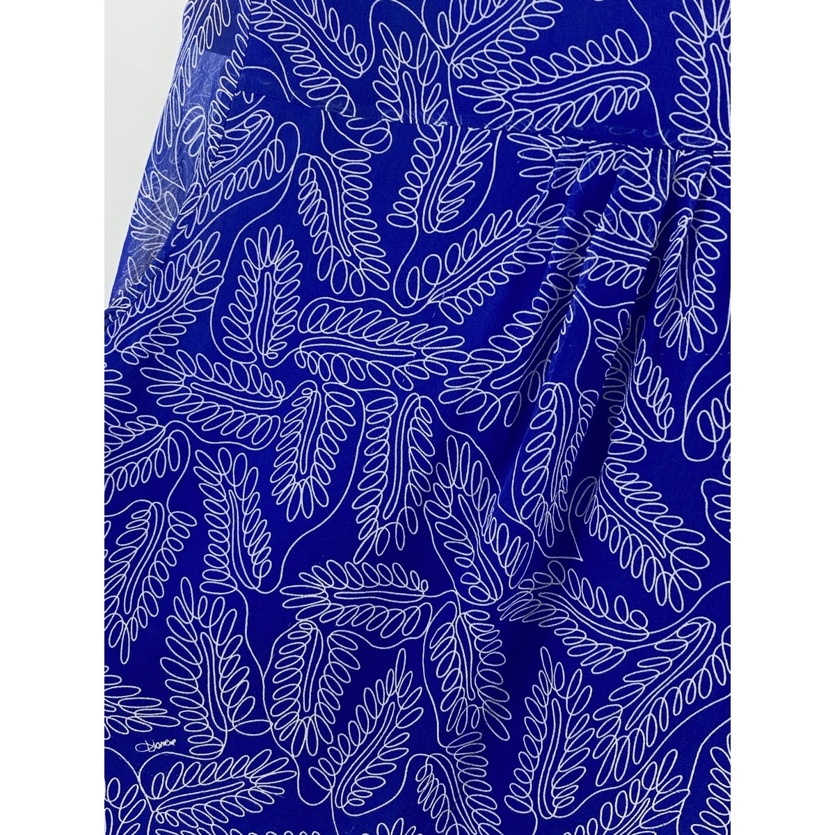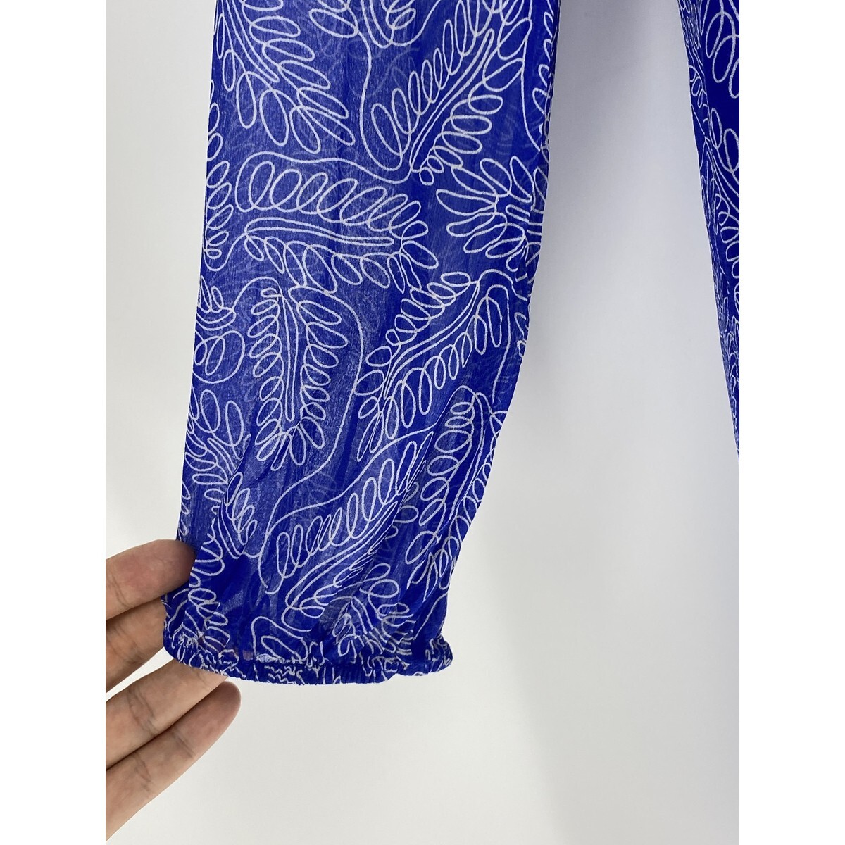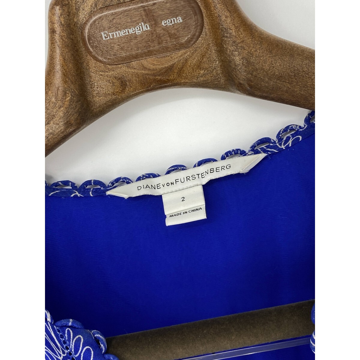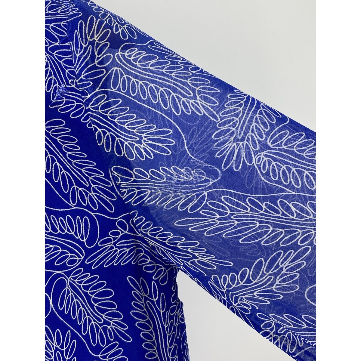 A9783/春夏 DIANE von FURSTENBERG ダイアン シルク100% ボタニカル柄 総柄 Vネック 長袖 ミニ ワンピース チュニック 2 M程 青 レディース