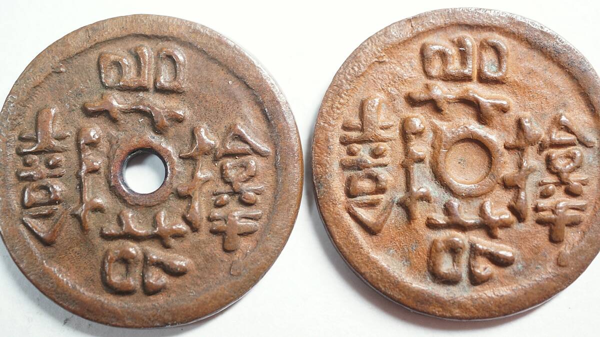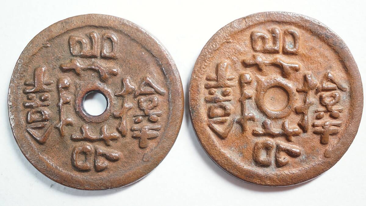 サムハラ銭 (銅) 正様・穴無し 2枚組 日華事変当時物 1937年~ 弾除け御守銭