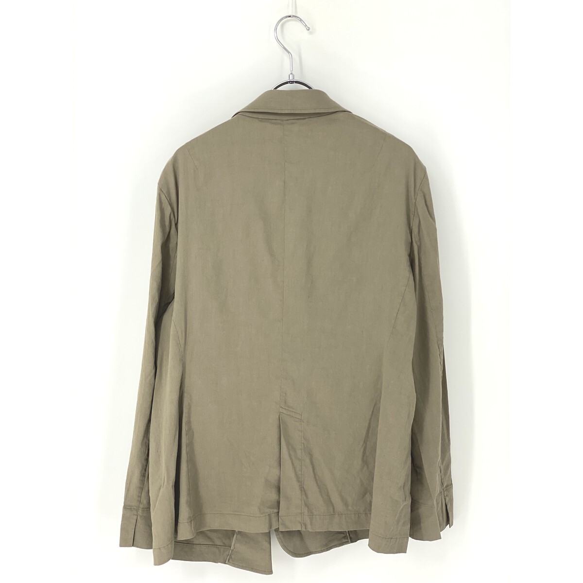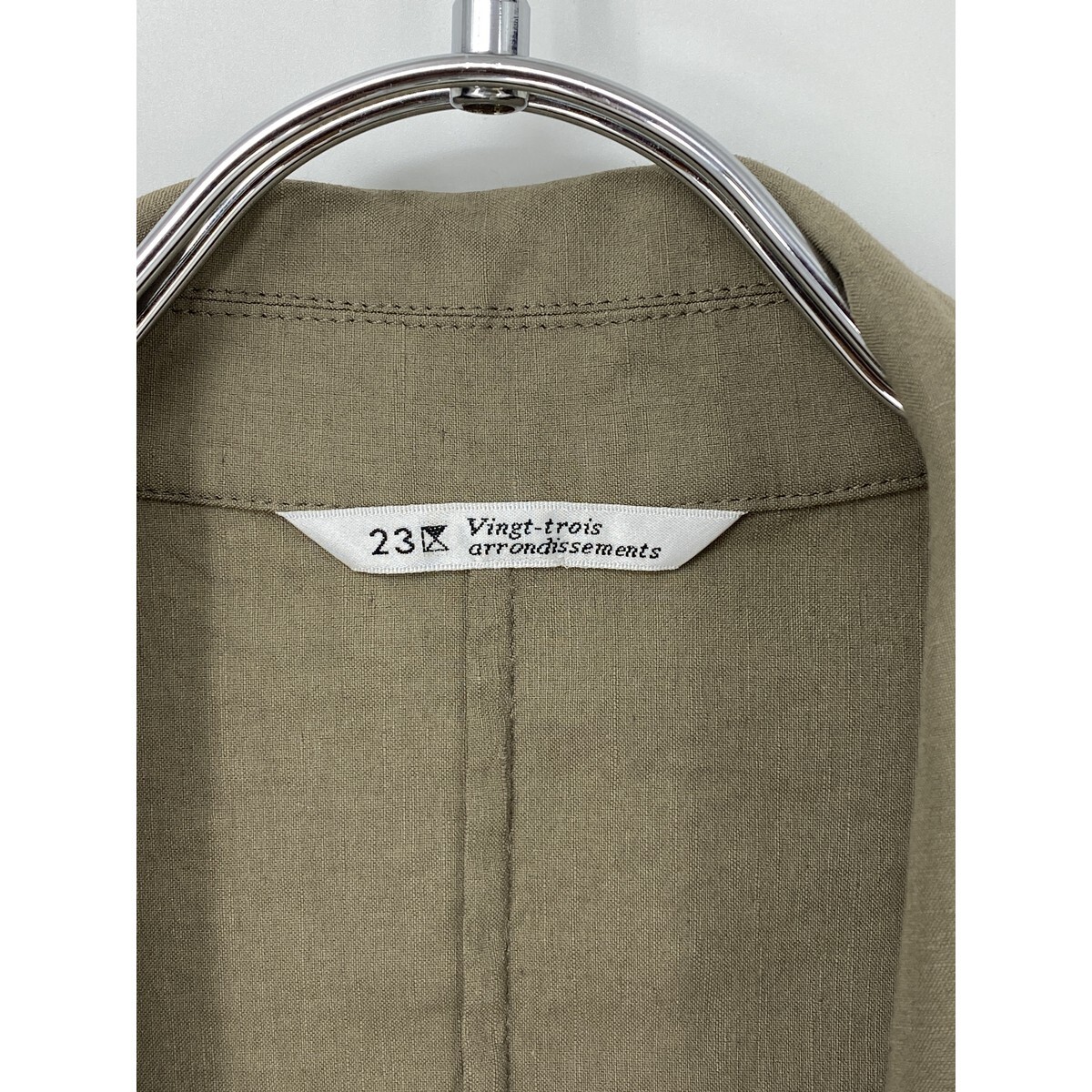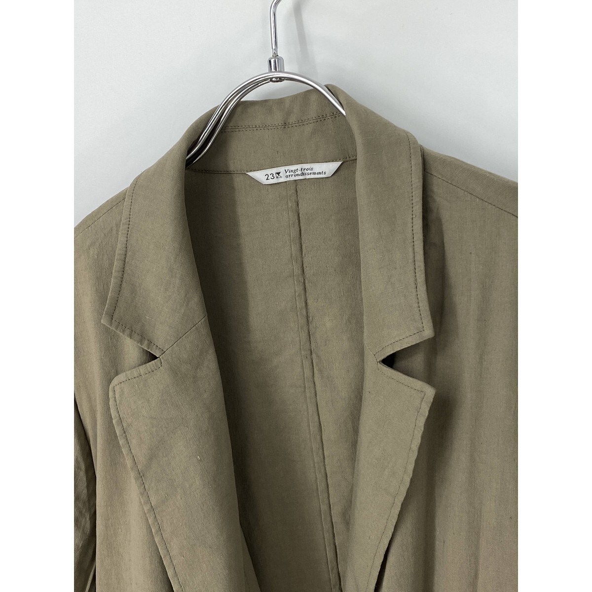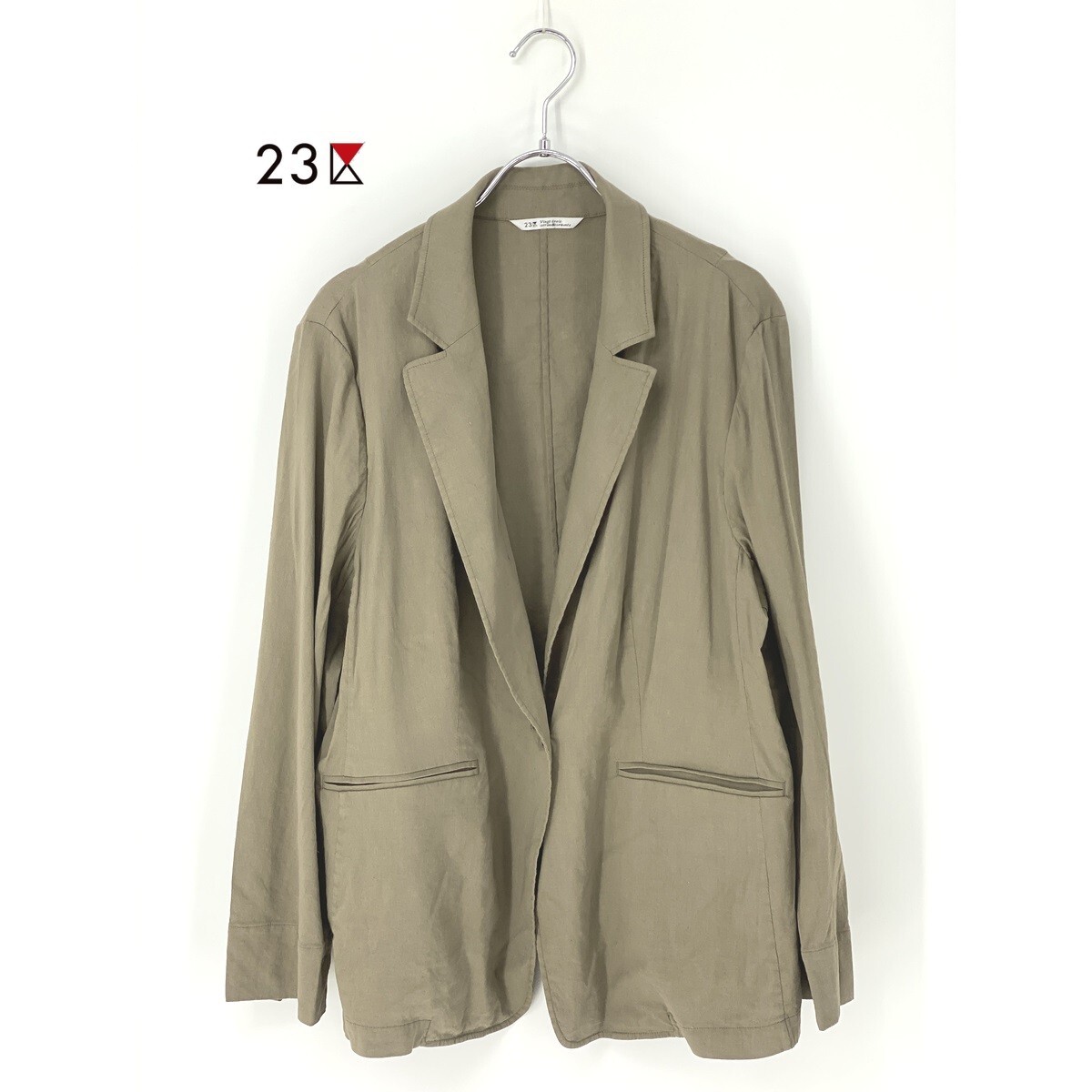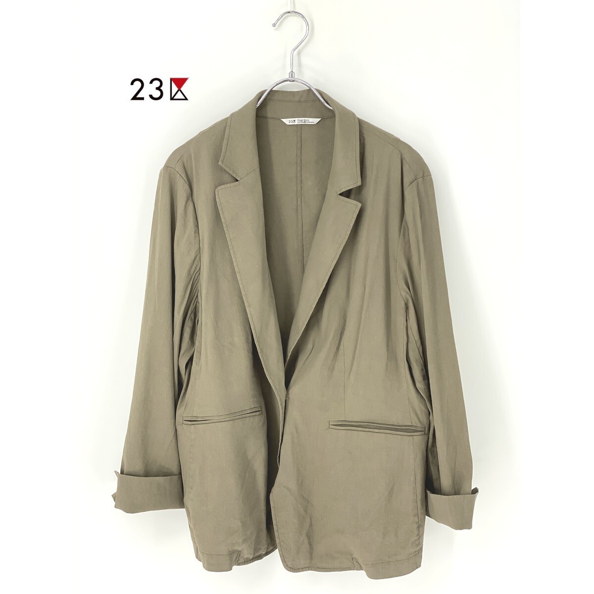 A8398/極美品 春夏 裏地無し 23区 ニジュウサンク リネン 長袖 テーラード シングル サマージャケット L程 カーキ/レディース シャツ