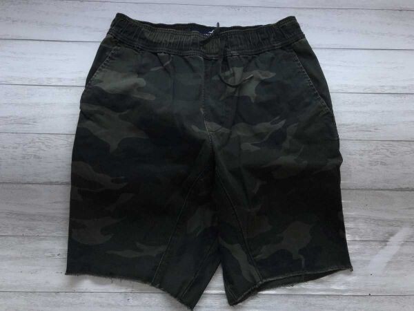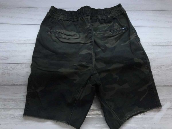 HOLLISTER ホリスター メンズ アメカジ サーフ 古着 ウッドランド迷彩カモフラ 裾カットオフ イージー ハーフ ショート パンツ XS カーキ です。