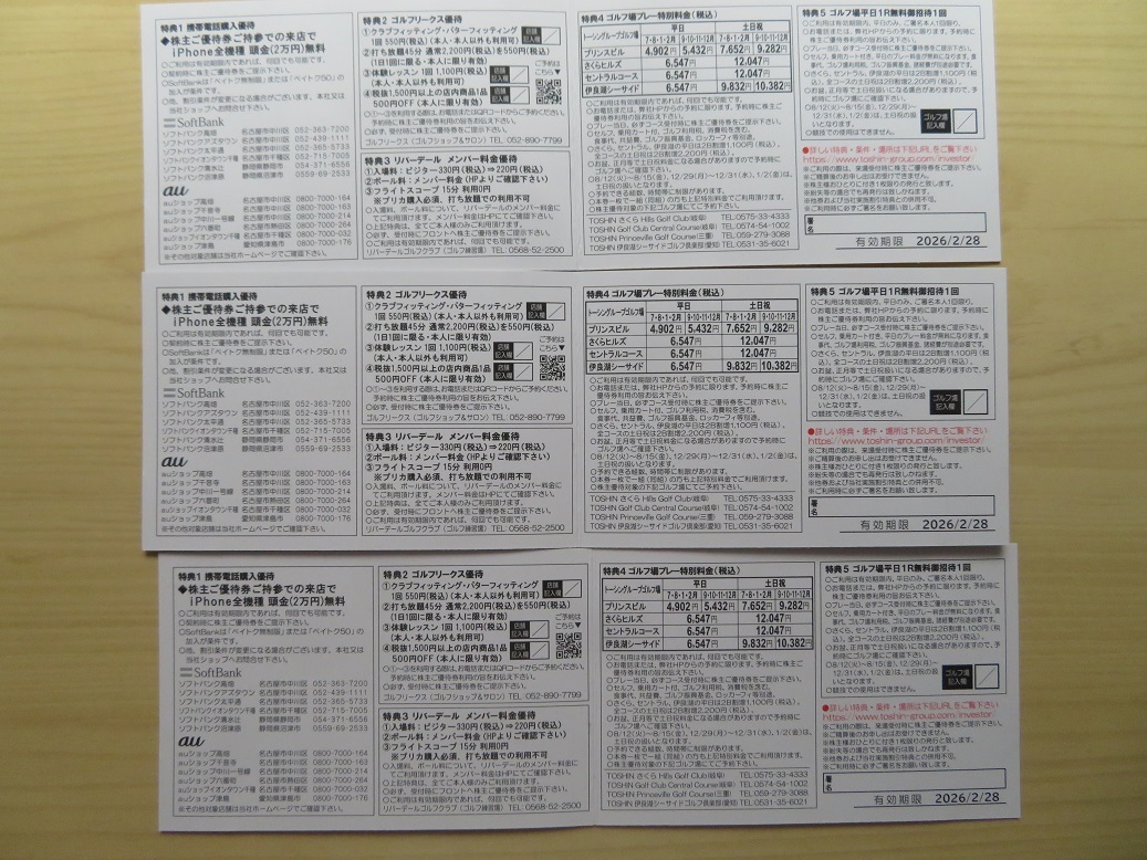 トーシンの株主優待券(ゴルフ場平日1R無料)3枚セットです。