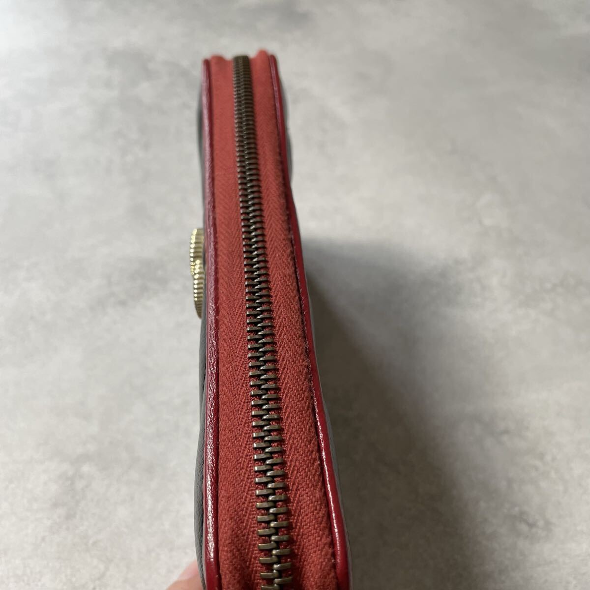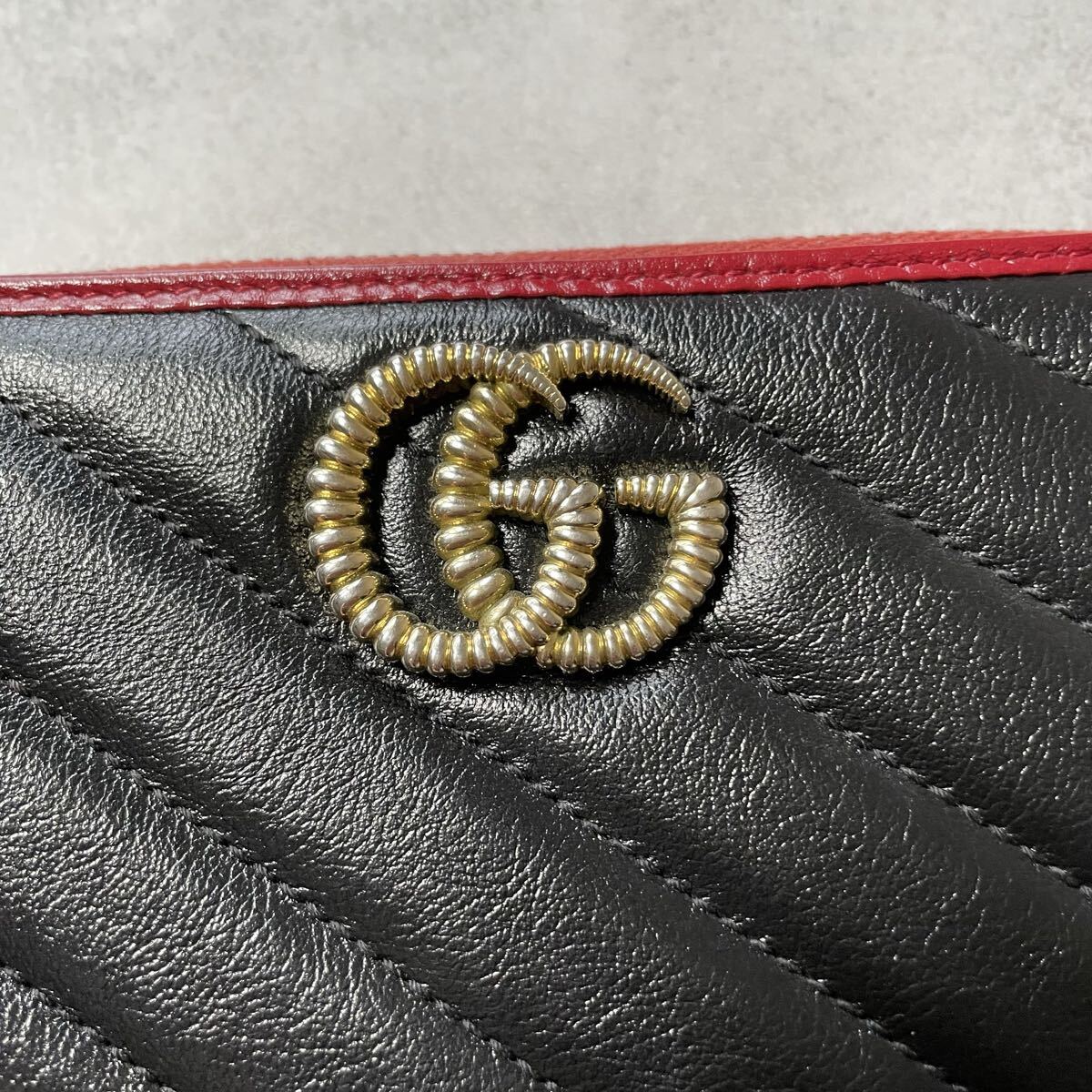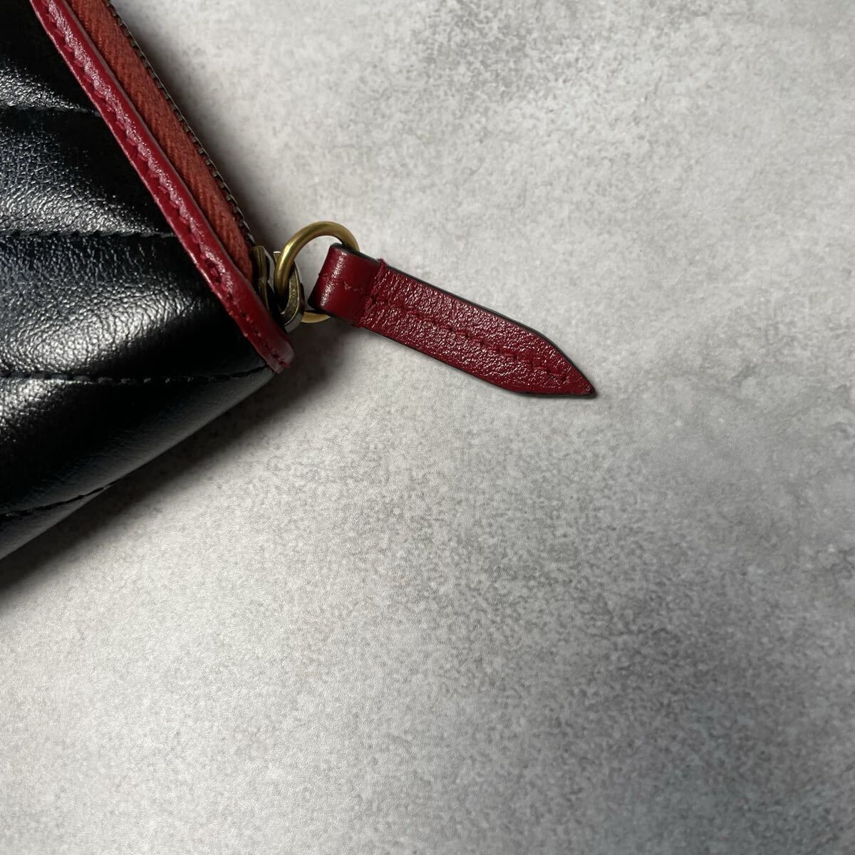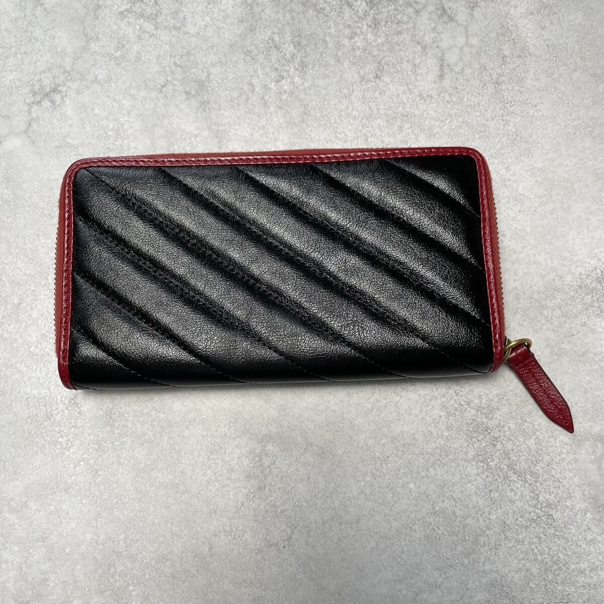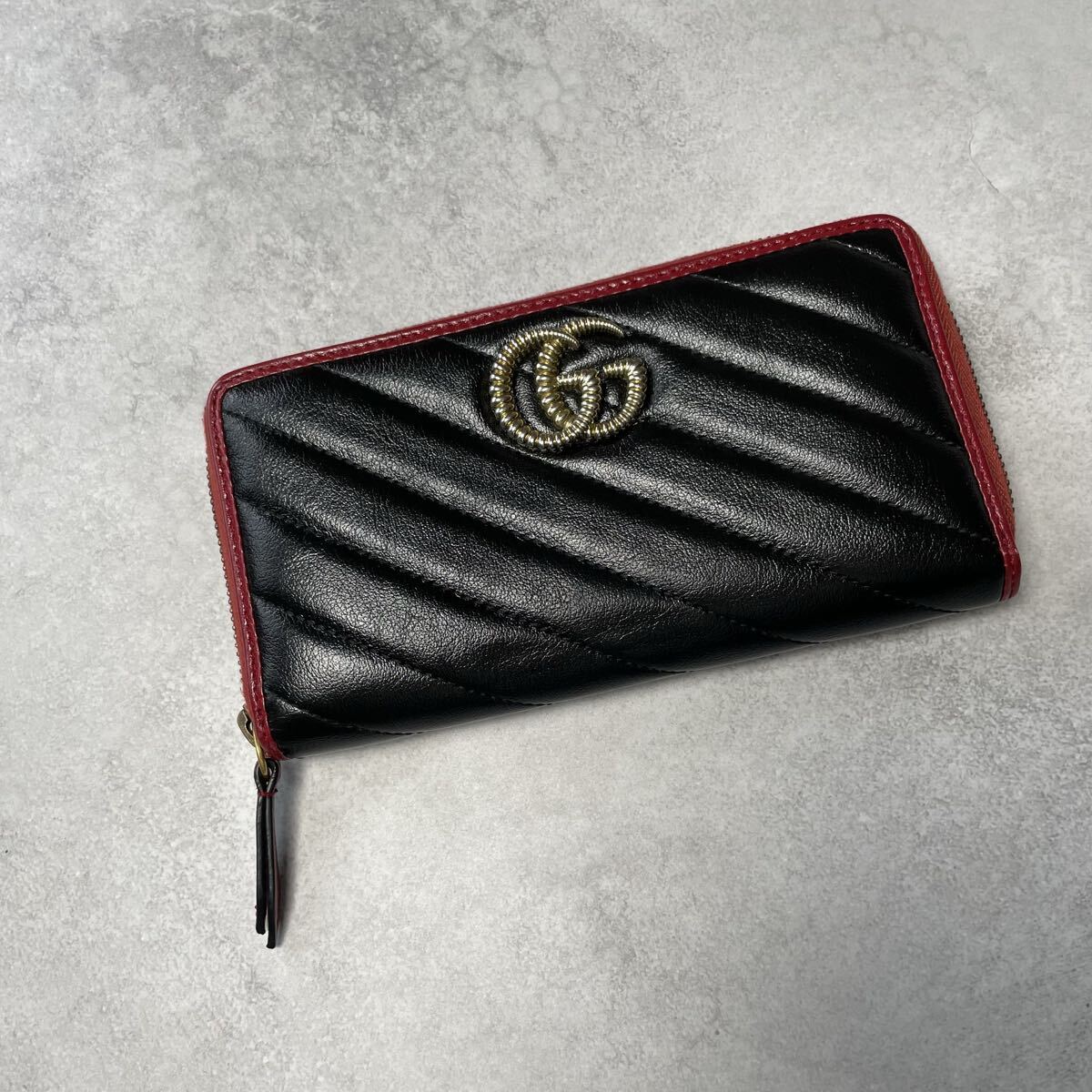 グッチのGGモーメントキルティングレザーロングウォレット、色はブラック×レッドになります。