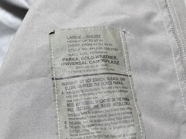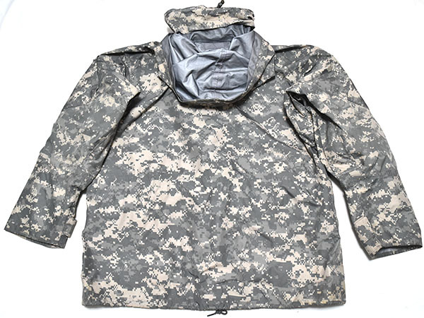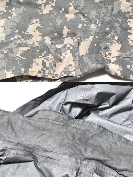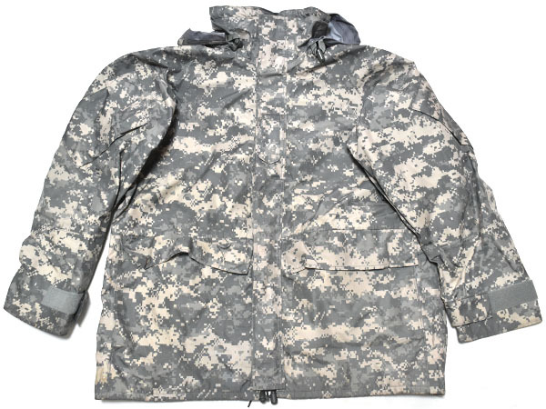 米軍実物、陸軍で使用されているACUカラーのECWCS (Extreme Cold Weather Clothing System) GEN2のゴアテックスパーカーです。従来からの厚手の素材で防水性・耐久性の高い素材を使用しています。フードは襟に収納が可能で、脇下には蒸れを軽減するためのベンチレーションが付いており、フロントはダブルジッパーとなります。ポケットは両肩と腹部に各2つずつ付いているので収納に大変役立ちます。腰にはドローコードが付いているのでウエスト周りの調整が可能となっています。レイヤリングにより防寒性を高めることができ、冬場のアウターとして、または登山やアウトドア、ツーリングなどにも最適です。※ゴアテックスの表記はありませんが同等の性能の素材が使用されています。 ■詳細 サイズ :LARGE-SHORT 丈 :77cm 身幅 :67cm 袖下 :60cm ■状態 USED。画像の様に所々汚れ、ボタンに錆あり。 |