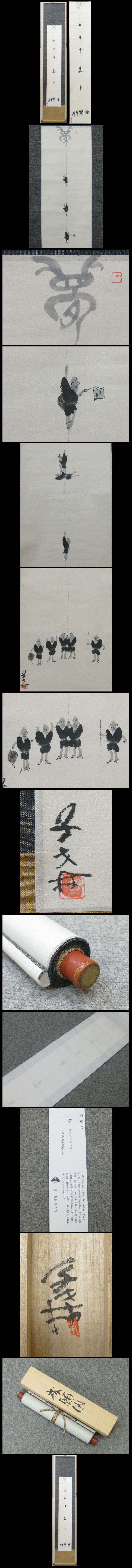 【子才林】 昭和15年生 京都在住 日本煎茶道連盟 代々京の街中に住み、我が道を歩きつつ織色界に身を置くが、飽き足らず、 以後煎茶道に巡り会い、創作煎茶道具を作り、その道で遊ぶ。 また一方では戯れ描と笑止独自の墨描にて各地で個展を開く。 ★商品サイズ★ ■掛軸 170×30.5cm ■作品 115×21cm ★商品の状態★ 良い状態です。 時代など詳しくは画像にてよく確認のうえでご検討いただければと思います。 どうぞよろしくお願いいたします。 |