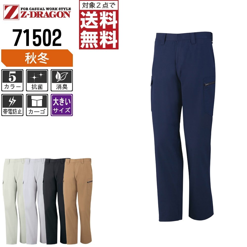 Z-DRAGON ジィードラゴン 秋冬 製品制電 ノータック カーゴパンツ JIS規格 帯電防止服 71502 色:ネービー サイズ:101