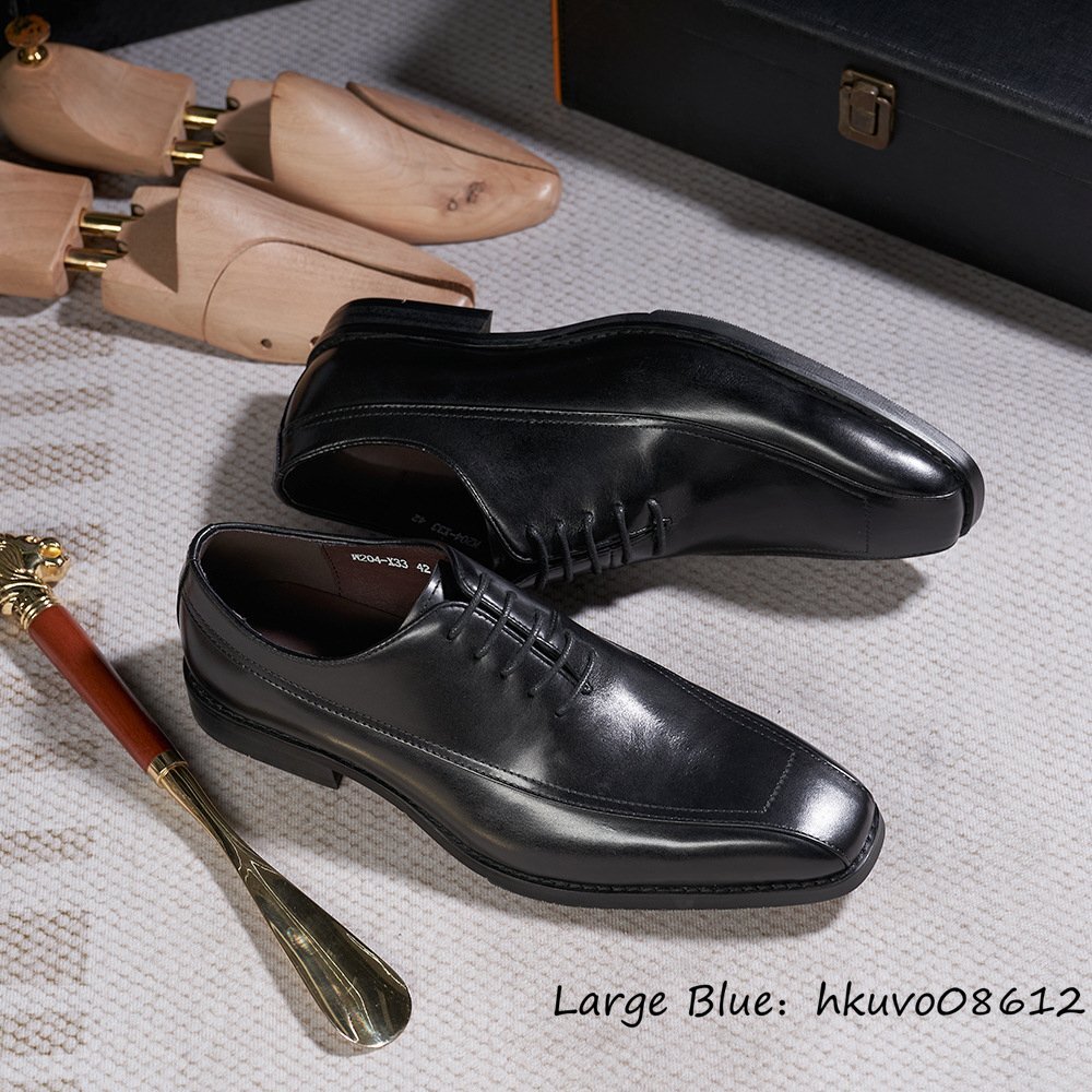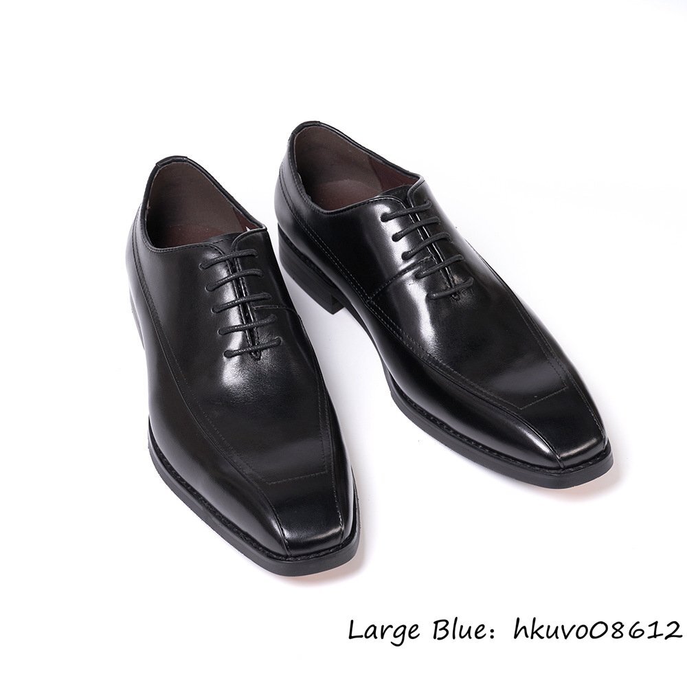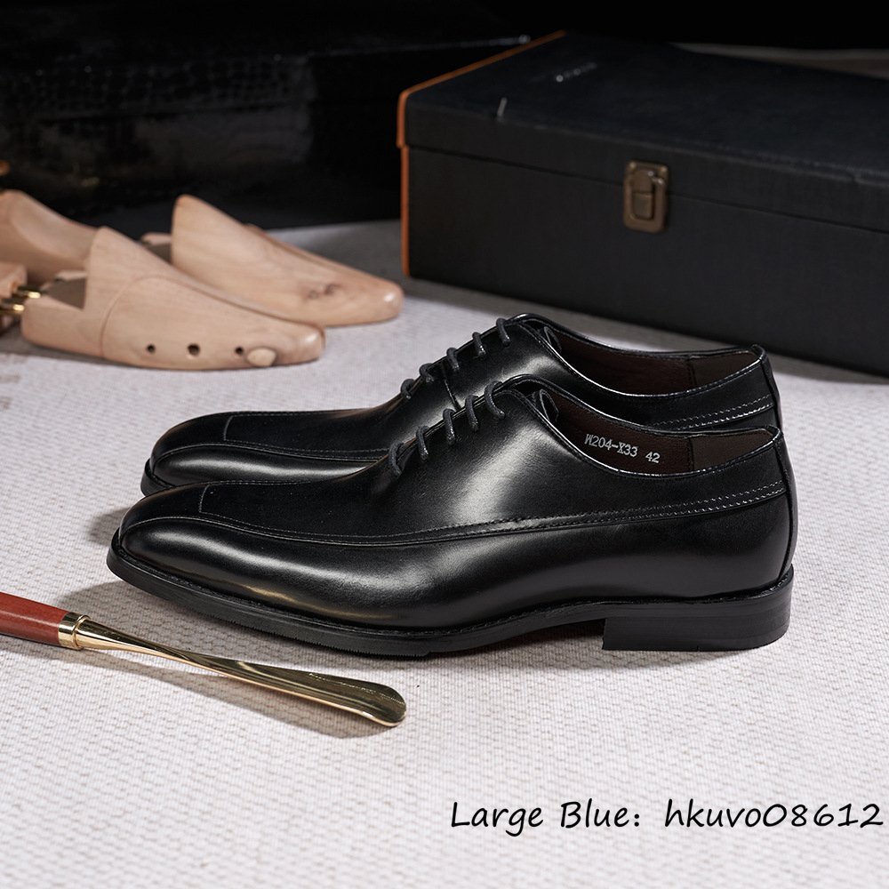 定価11万超◆本革 レザーシューズ 超希少 ビジネスシューズ 職人手作り 革靴 牛革 紳士靴 内羽根式 冠婚葬祭 フォーマル ブラック 24.5cm