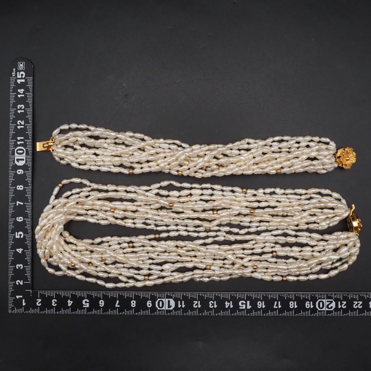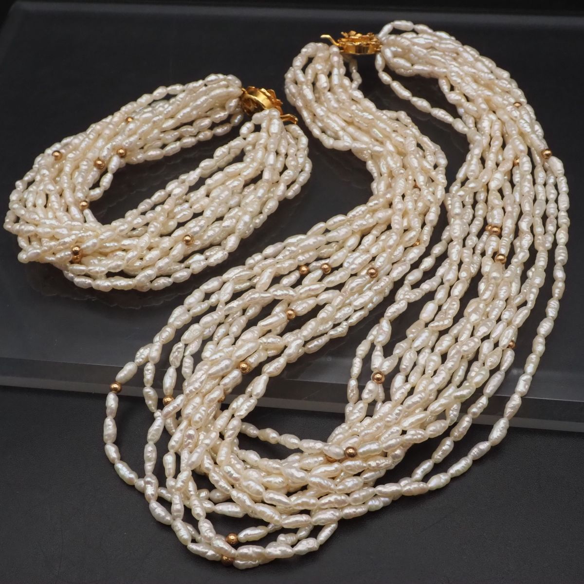 G276 淡水真珠 パール SILVER刻印 ネックレス ブレスレット セット 13連 デザイン シルバー 6月誕生石