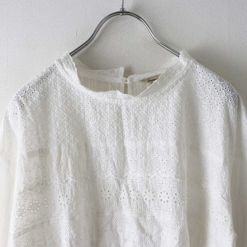サマンサモスモス Samansa Mos2 SM2 コットンオーバーレースブラウス F ホワイト┃ドビー刺繍 カットソー シャツ【2400014615067】