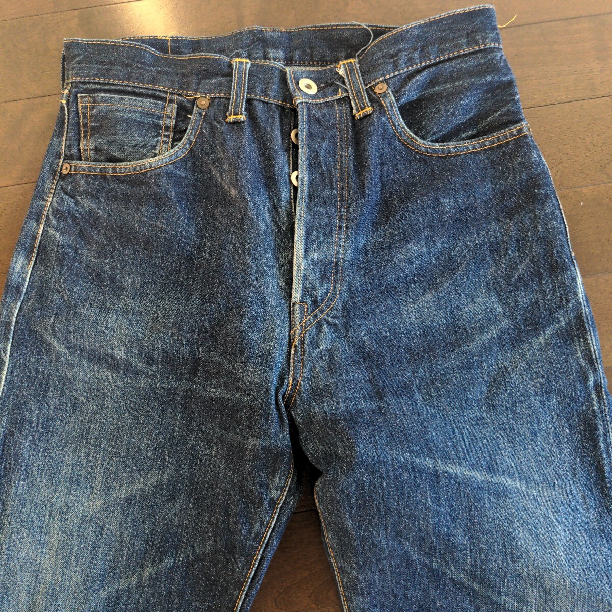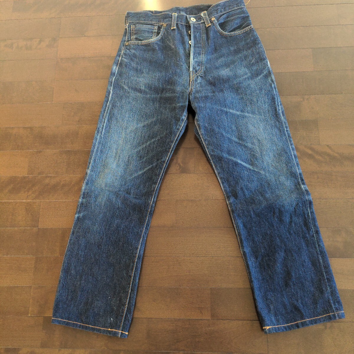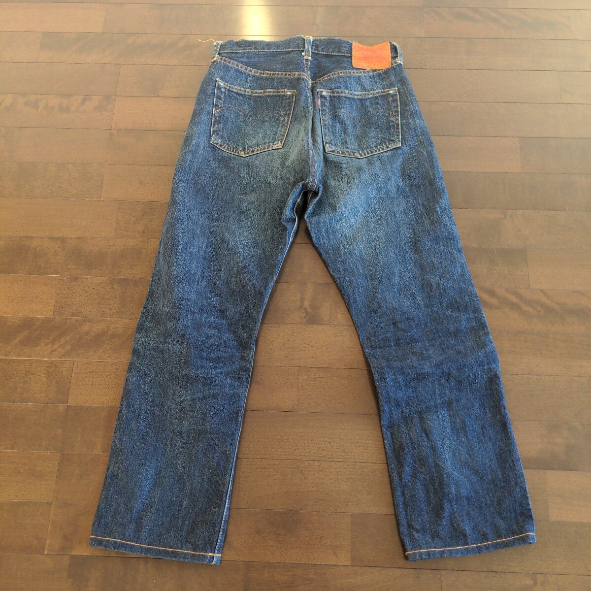 糊付けして数回履きました。出品前に洗いましたが、まだ糊が残っている感じです。色もそれなりに残っているので、履き込めばいい感じになるかもです。