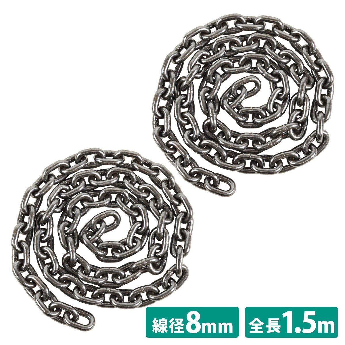 2本 全長1.5m 線径 8mm 2t チェーンスリング 鎖 鋼チェーン 予備 交換 チェーン 長さ 1500mm 150cm 径 0.8cm スリング チェン