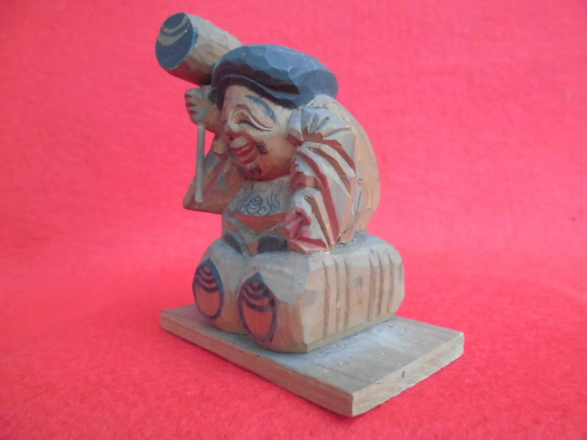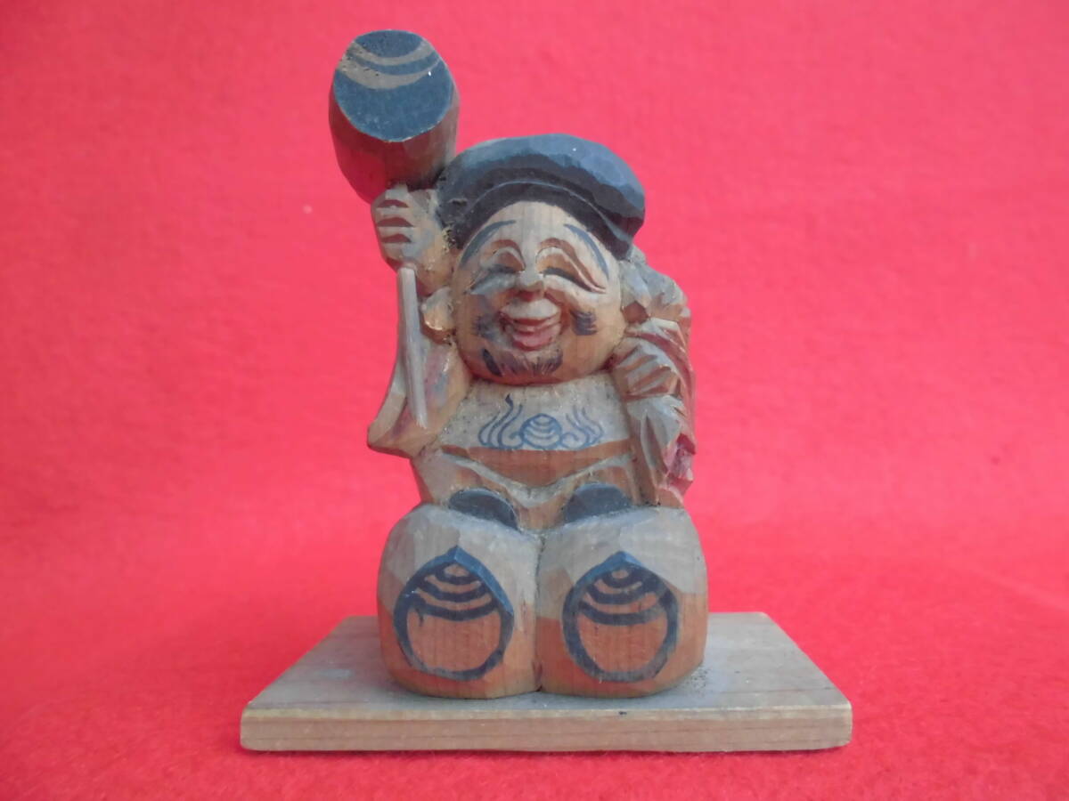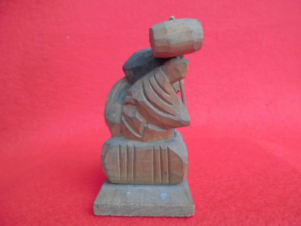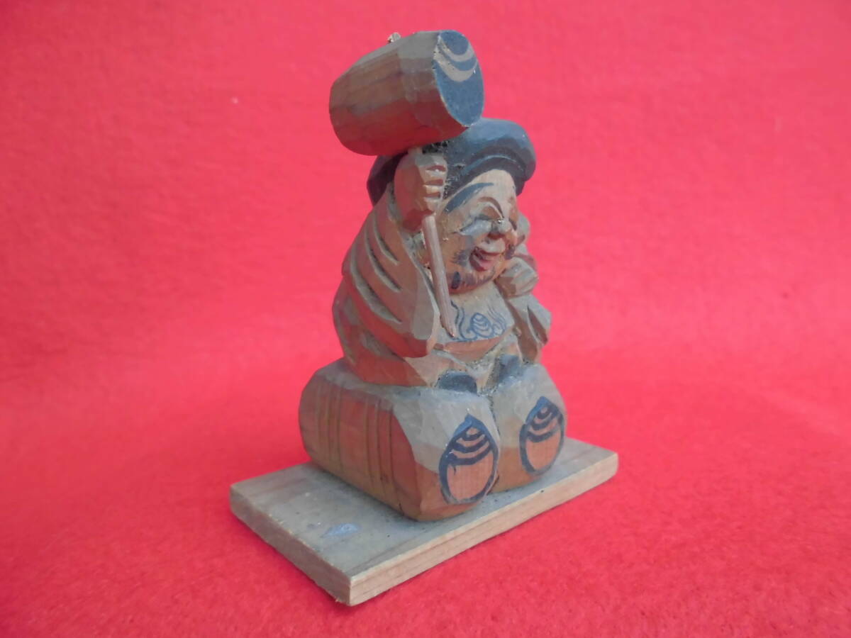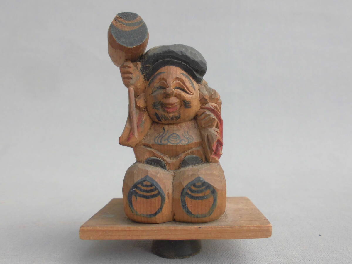 ☆旧家蔵出し・仏教美術【木彫/彫刻・大黒天 ・大黒さま『日比野朝国作/明治16年』髙66mm/約 ・仏像・社付/神社仏閣】当時物の出品です。