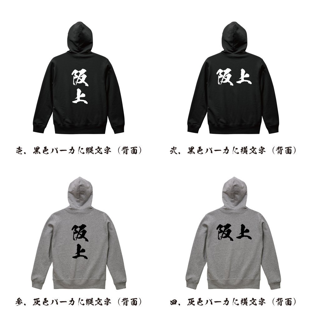 阪上 書道家が書く デザイン フルジップ パーカ 【 名字 】 メンズ レディース キッズ