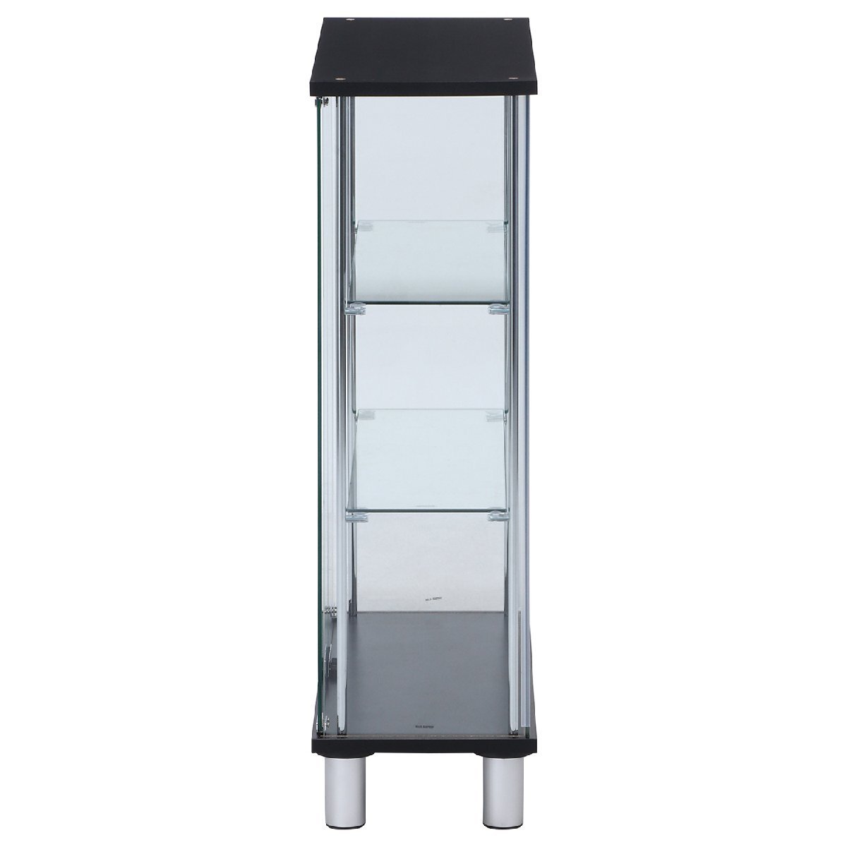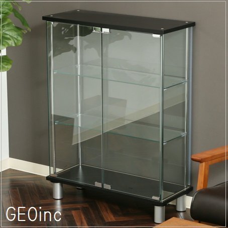 素 材 | (天板/地板):プリント紙化粧繊維板 (柱):金属(鋼) (扉板/背板/側板/棚板):強化ガラス 表面加工(柱):めっき(クロム) |
