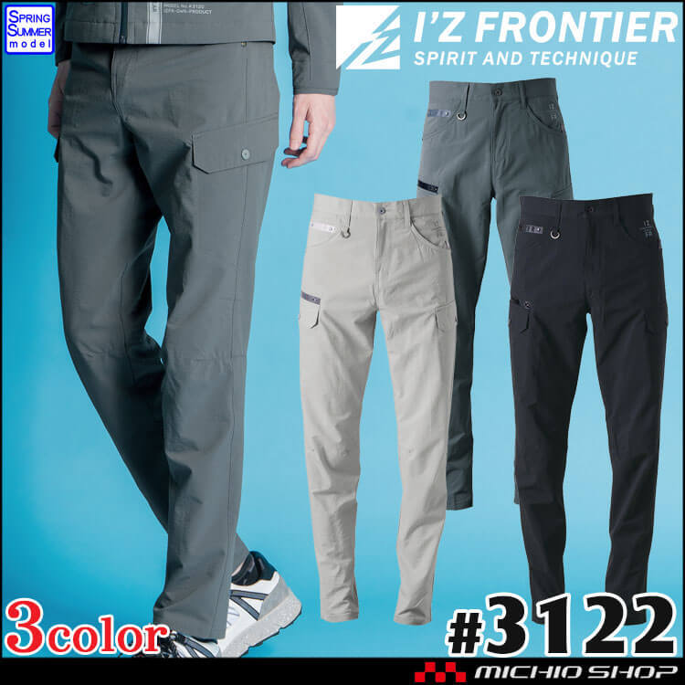 作業服 春夏 アイズフロンティア ライトウェイトA.D.ストレッチカーゴパンツ 3122 110cm 14スチールグレー