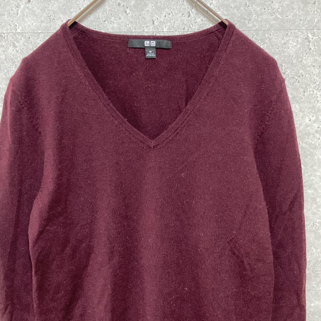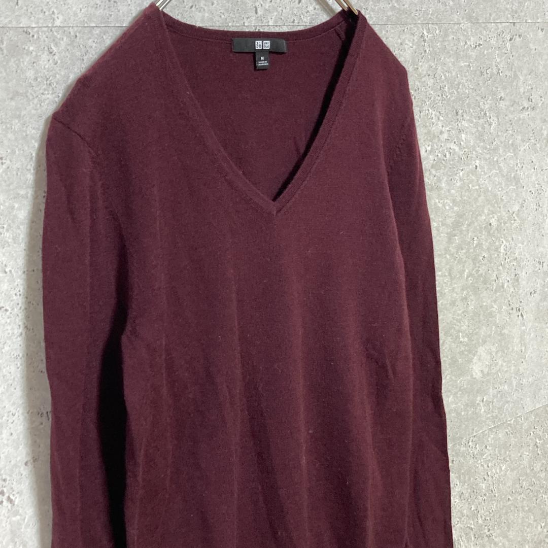 ユニクロ(M)エクストラファインメリノVネックセーター*長袖*ウール100%