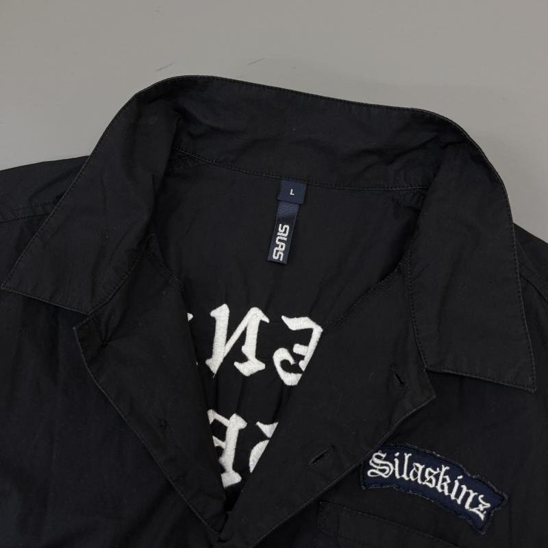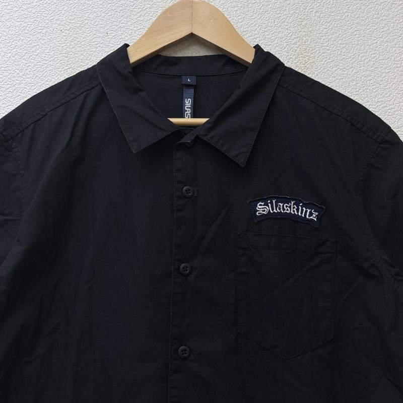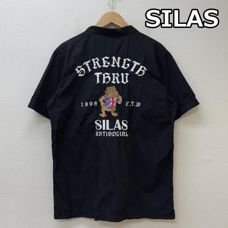 サイラス 10101410 ブルドッグ ロゴ 刺繍 ボックス 半袖 ワーク シャツ 黒 ブラック L
