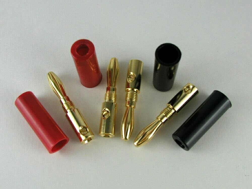 バナナプラグ 24K 金メッキ ゴールド ソルダーレス レッド&ブラック 8本セット
