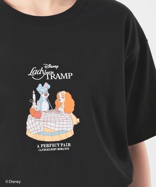 COLZA コルザ ディズニー わんわん物語 ゆるT (ブラック) Tシャツ Sサイズ レディ&トランプ