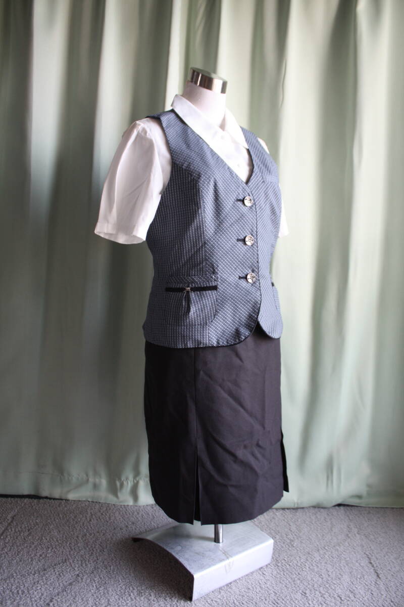 OL制服・事務服enjoy青系チェックベスト・IST濃グレースカート  13号です。