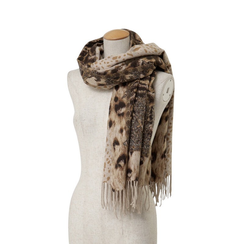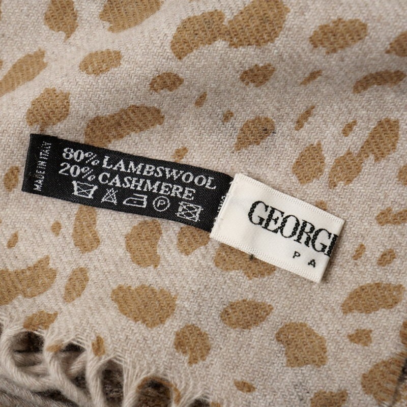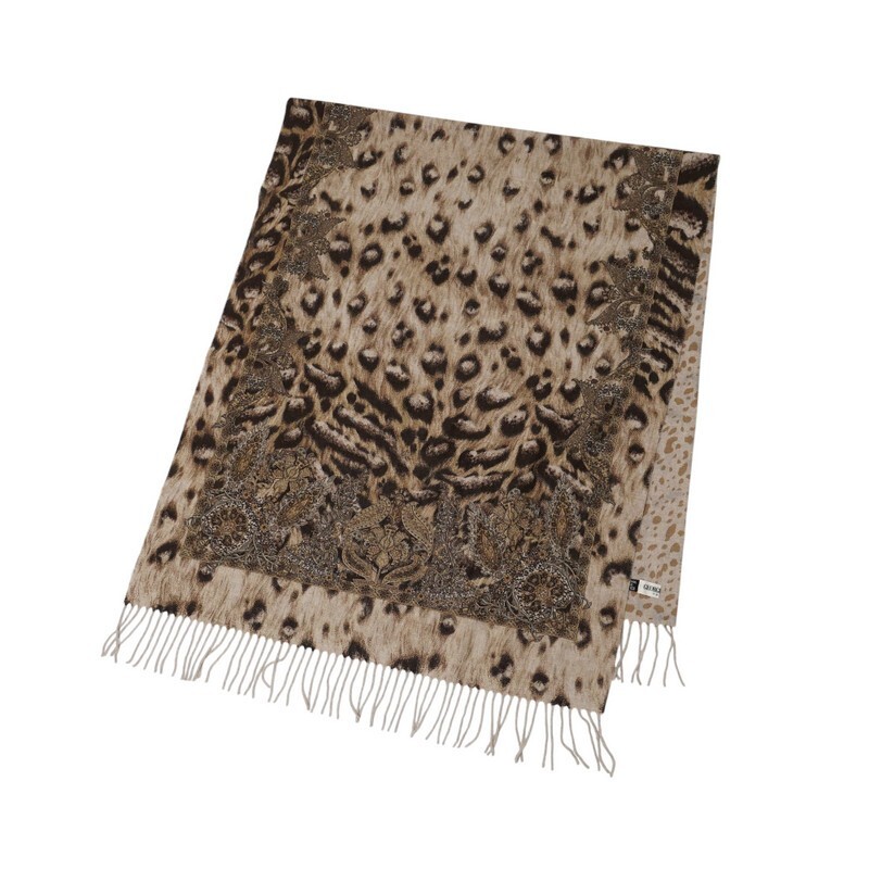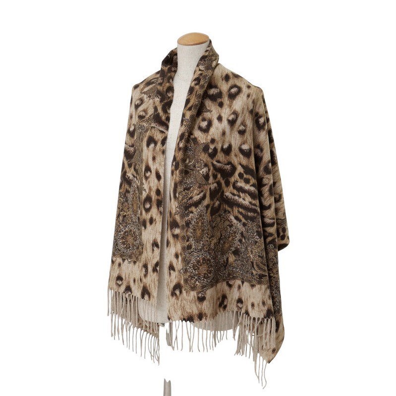 TI7422△イタリア製 GEORGES RECH ジョルジュレッシュ ラムウール×カシミヤ レオパード柄/ヒョウ柄/ボタニカル柄 大判 ストール ショール | |||