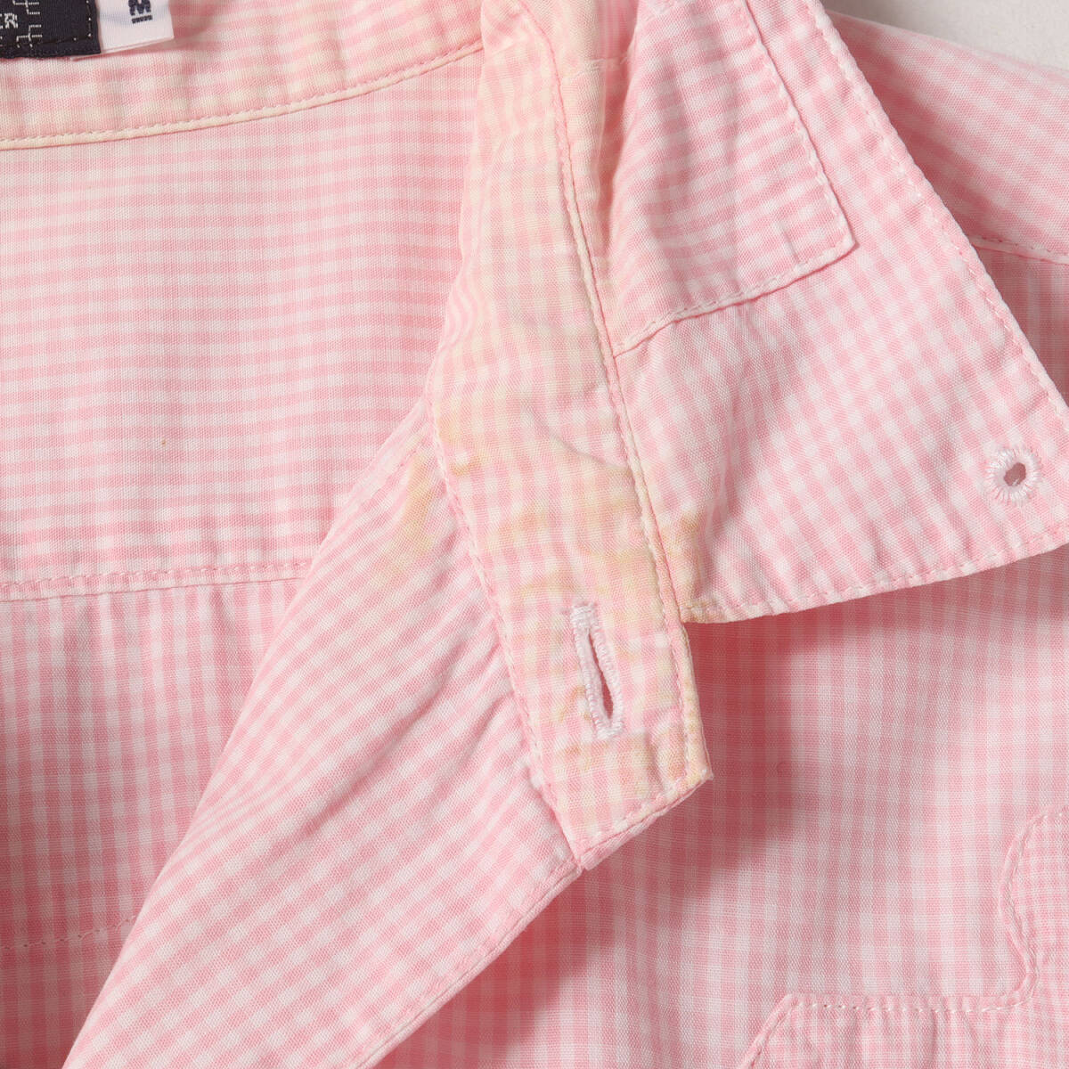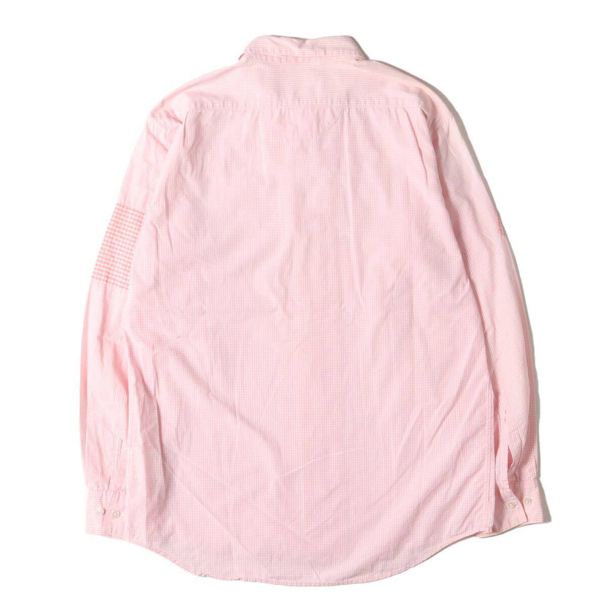 | 【ブランド名】UNDERCOVER(アンダーカバー) 【リリース時期】2001年秋冬 【素材】コットン100% 【商品説明】 2001年秋冬コレクション“D.A.V.F(宝飾武装義勇軍)期”のアーカイブアイテムです。こちらはユニークなパッチワークで仕上げたギンガムチェックシャツになります。 【カラー】ピンク×ホワイト 【サイズ】M 着丈約74cm(背中襟下から)×身幅約55cm(脇下から)×肩幅約44cm×袖丈約60cm(肩上から) 【状態】ヴィンテージ ・襟元、右肩など所々に汚れが見られますが、破れなどのダメージはありません。 【付属品】なし ![]() ※色がある場合、モニターの発色の具合によって実際のものと色が異なる場合があります。 お問い合わせに関しましてはメールのみでのご対応とさせていただいておりますのでご了承下さいませ。 |