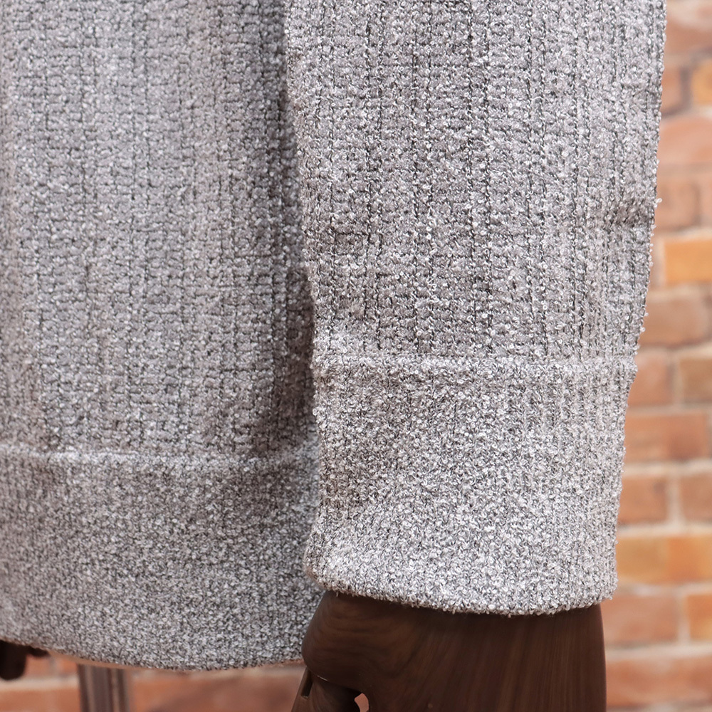首元をやさしく包み込むハイネックデザインは保温性を高めつつ、シルエットに上品さをプラス。軽やかで快適な着心地は、ジャケットやコートのインナーとしても最適。表情豊かなブークレーニットが、シンプルながら存在感のある都会的な印象を演出する、大人のためのセーターです。