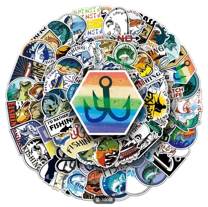 ★Fishingステッカー100枚★PVCステッカー★送料180円★