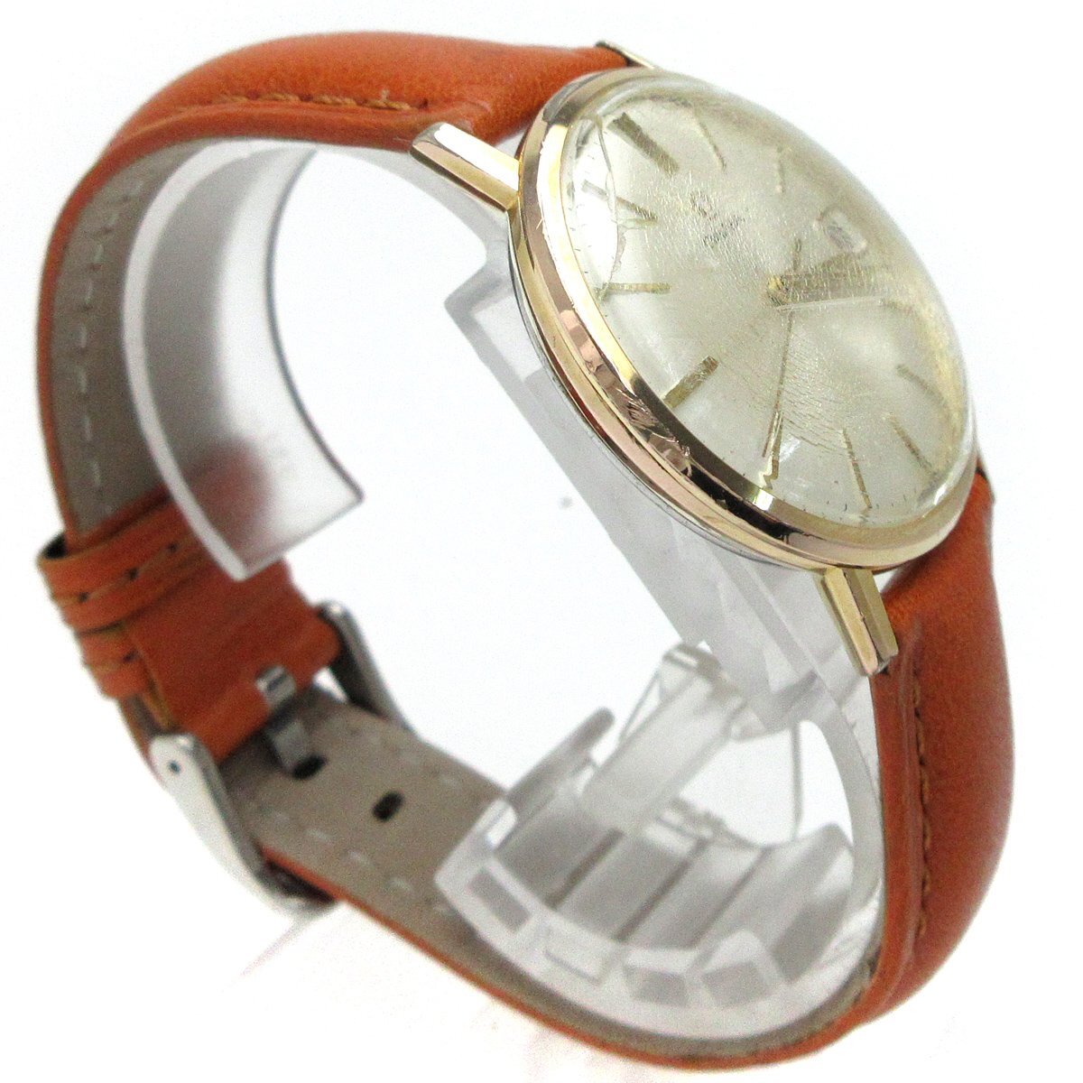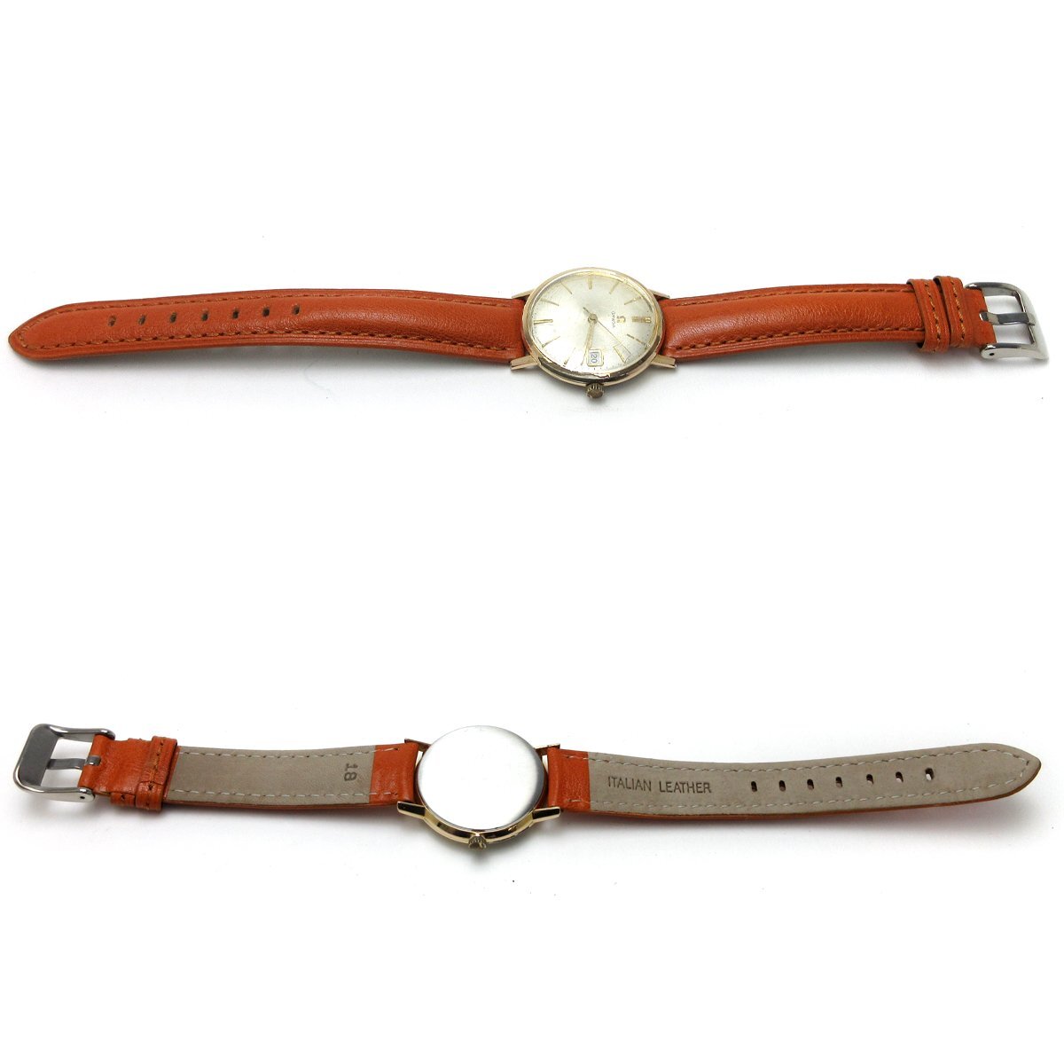 ■スイスの時計ブランド『オメガ(OMEGA)』。 ■1965年ぐらいの製造、キャリバー661搭載したマニュアルワインド ウォッチ。 ■金張りロールゴールドケース。メッキとは一味違う深みのある色味が特徴。 ■バーインデックスに3針、カレンダーのモデルです。 ■アンティーク品のためコレクションや部品取りにもおすすめ。 ◎マニュアルワインド ムーブメント(cal.661)。 ---【商品状態】--- ☆稼動品、動作はしておりますが”アンティークウォッチ”につき多少の精度の誤差はご了承ください。 ☆外装、金張り加工のため、ベゼルにハゲがあり下地が見える部分があります。 ☆風防にキズやヒケがあります。 ☆リューズ先端に摩耗があります。指針操作、カレンダー操作可能。 ☆針、インデックス、文字盤にシミのある箇所があります。 ☆バンドは新品(社外品)、尾錠も社外品。 ☆中古商品のため防水性の保障はつきませんのでご了承ください。 ※商品画像はお客様のモニター環境によっては色調が異なって見える場合がございますのでご了承ください。 |