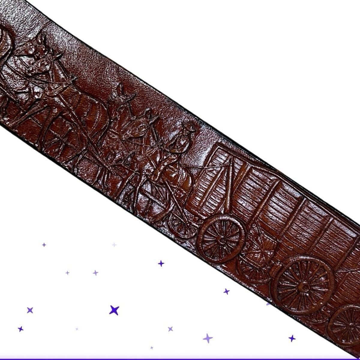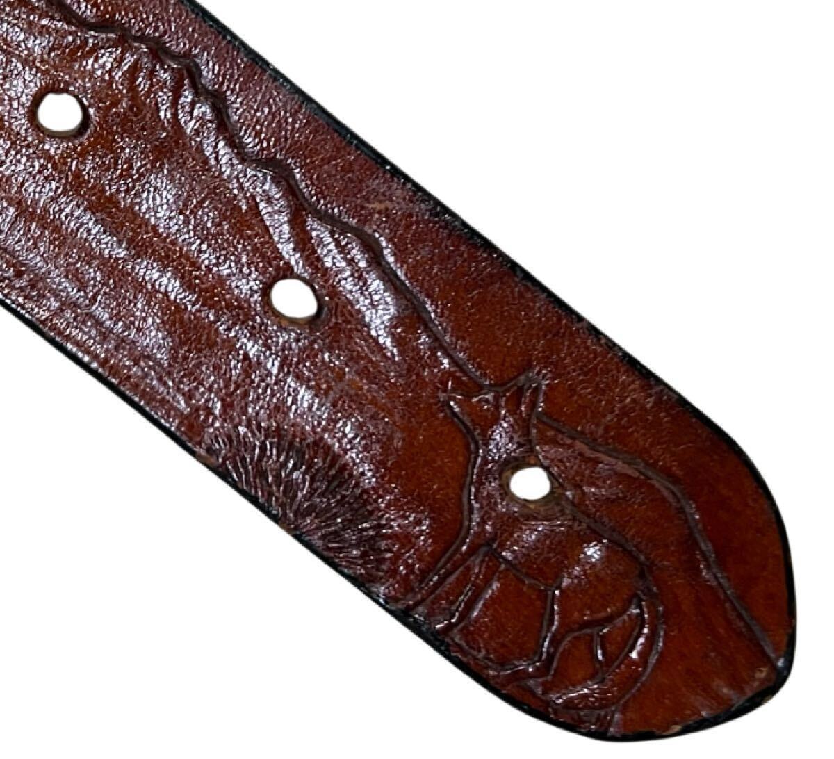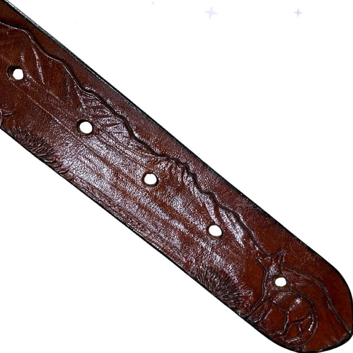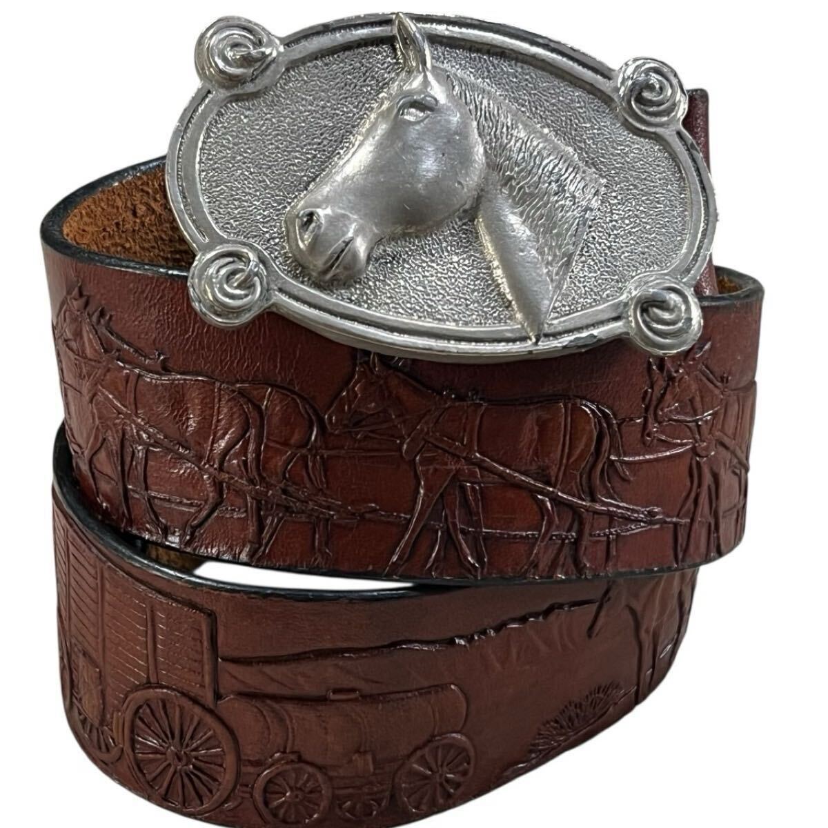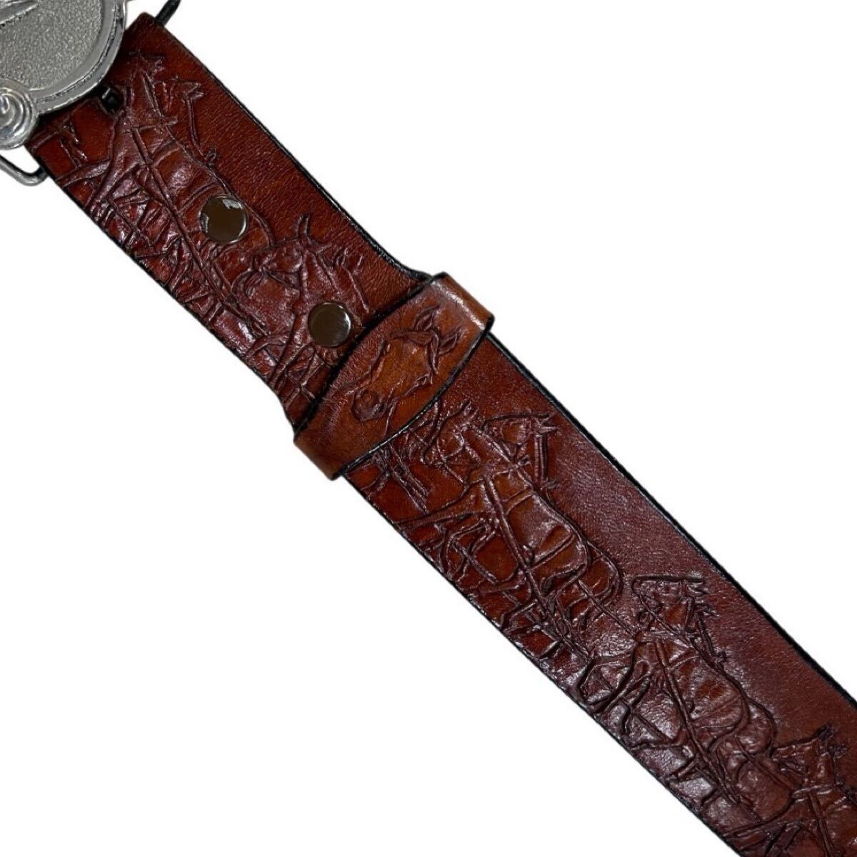 ● 希少品 馬顔バックル 本革レザー 馬 馬車 狐 彫刻 カービング ウエスタンベルト 送料410円