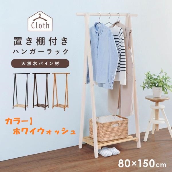 天然木パイン省スペース置き棚付きハンガーラック幅80【ホワイトウォッシュ】 ■商品ランク■ ほぼA【限定品/新品】 開封確認再梱包した為 ■サイズ■ |