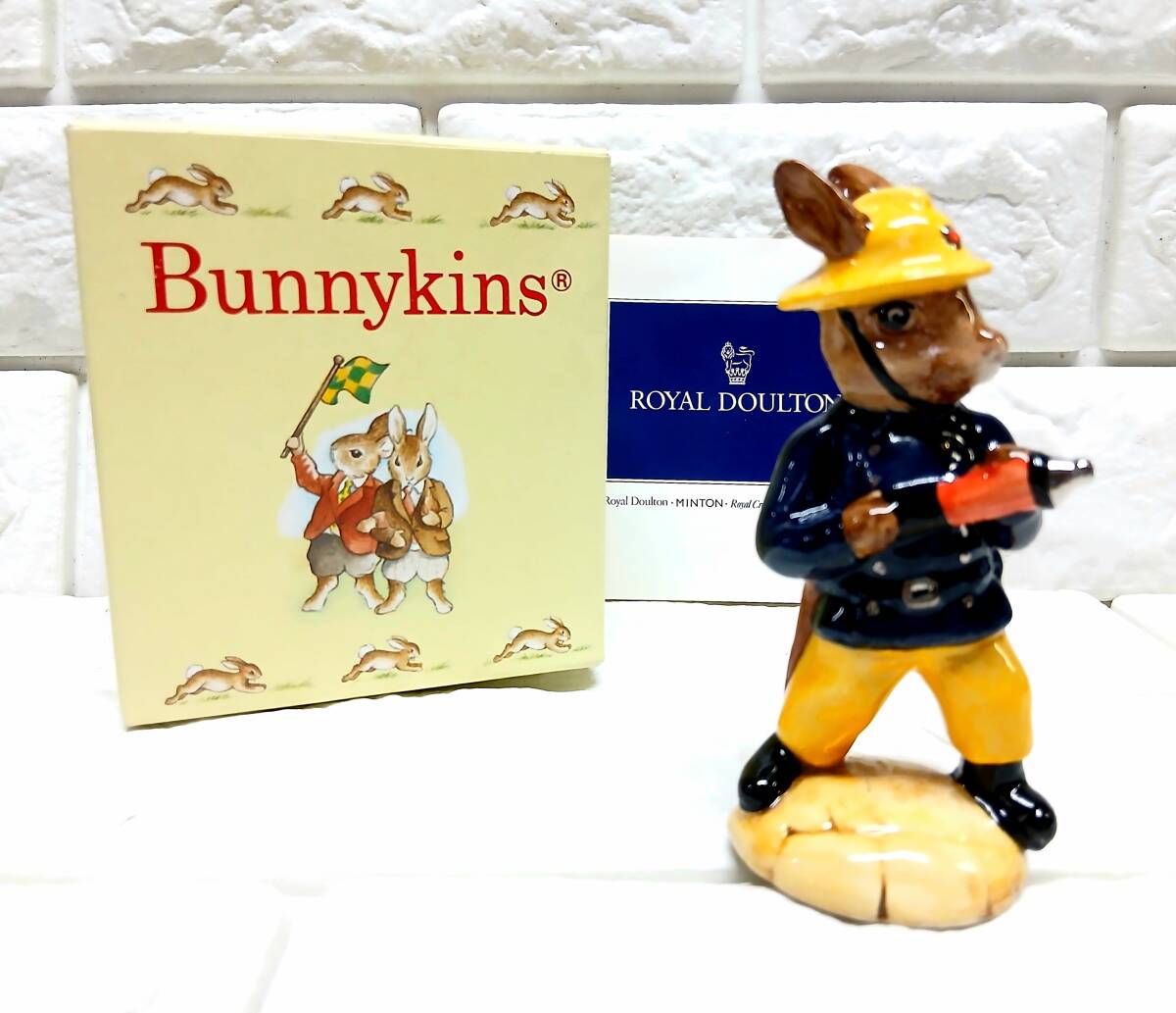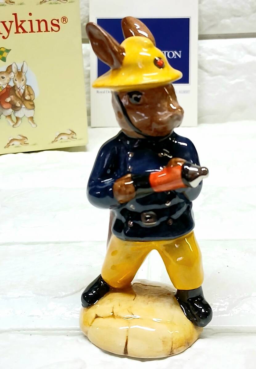 n163【Royal Doulton FIREMAN BUNNYKINS 1988】ヴィンテージ ロイヤルドルトン『うさぎ消防士』陶器 人形 イギリス