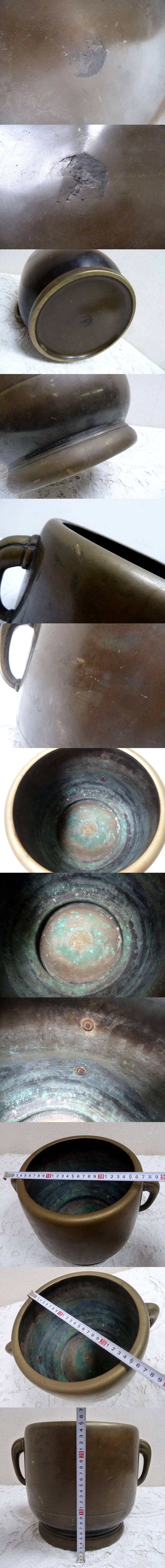 (☆BM)宣徳火鉢(0919-①)共耳付き 真鍮製 高さ25.5㎝/4.5kg 日本伝統工芸 手あぶり火鉢 昭和レトロ アンティーク調 金属製