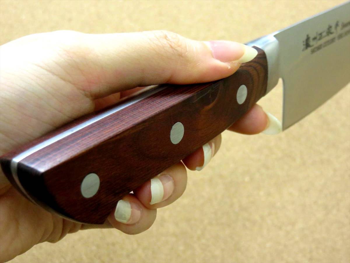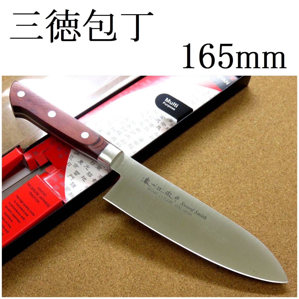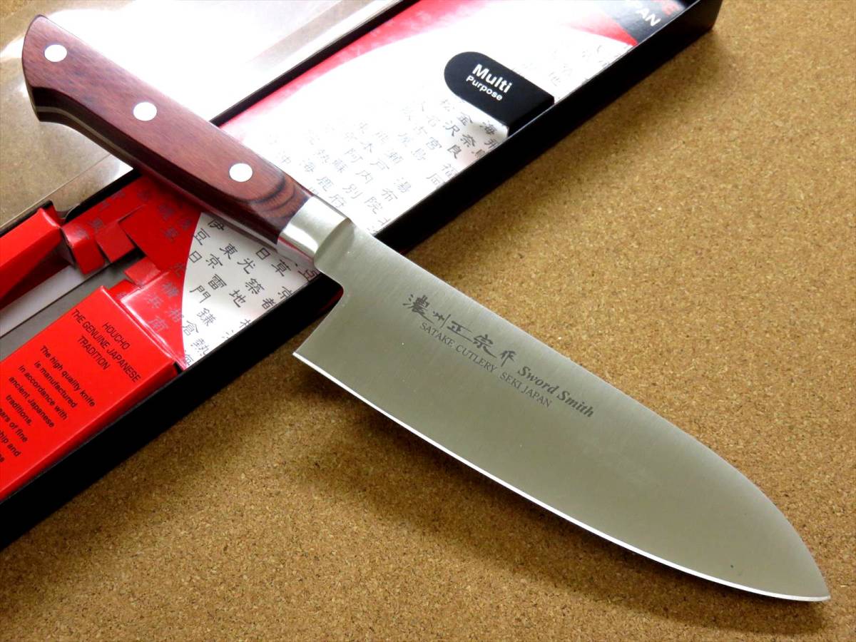 関の刃物 三徳包丁 16.5cm (165mm) 濃州正宗作 モリブデンステンレス鋼 茶色積層強化木 家庭用 野菜 魚処理 肉切り 両刃万能包丁 日本製