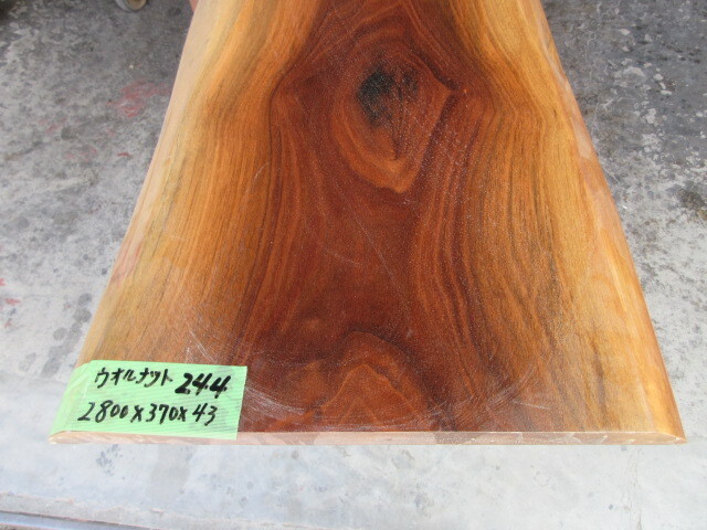 ウォールナット NO,244 2800×370×43 住宅店舗内装 無垢一枚板 テーブルカウンター 棚板 インテリア制作 リフォームDIY材料 小物制作