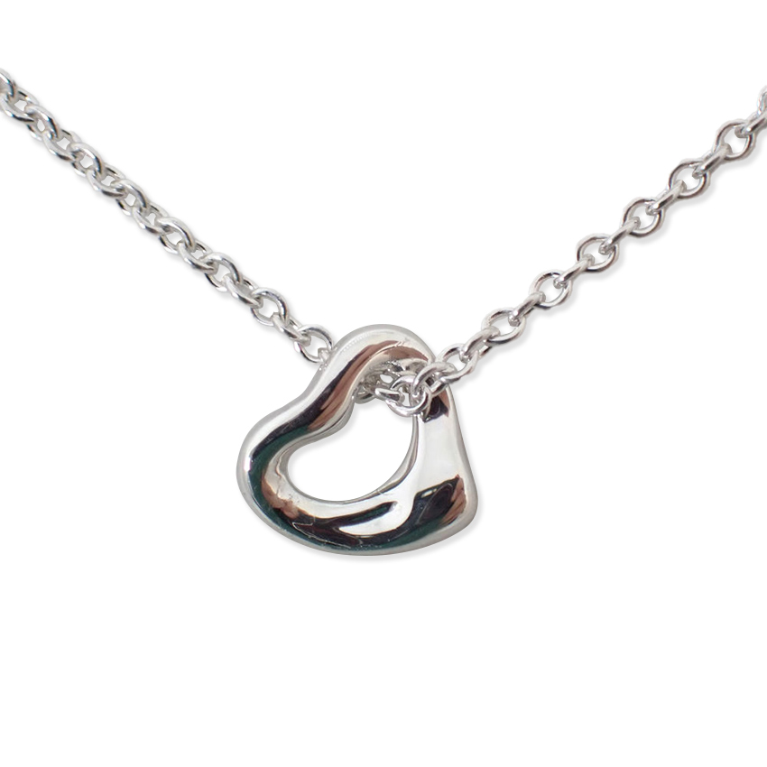 ティファニーのオープンハートで一番小さいサイズのハートトップになります。繊細でフェミニンな印象の美しいネックレスです。