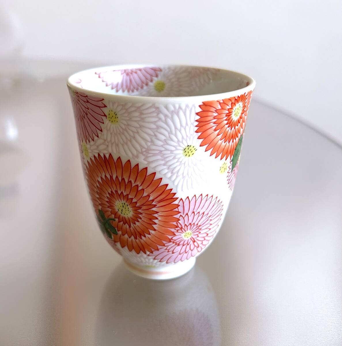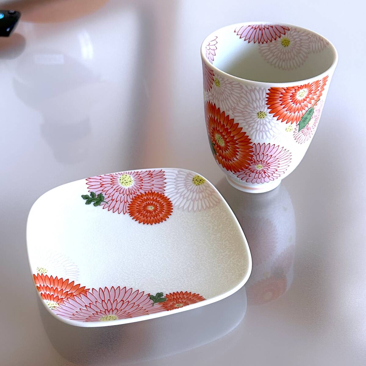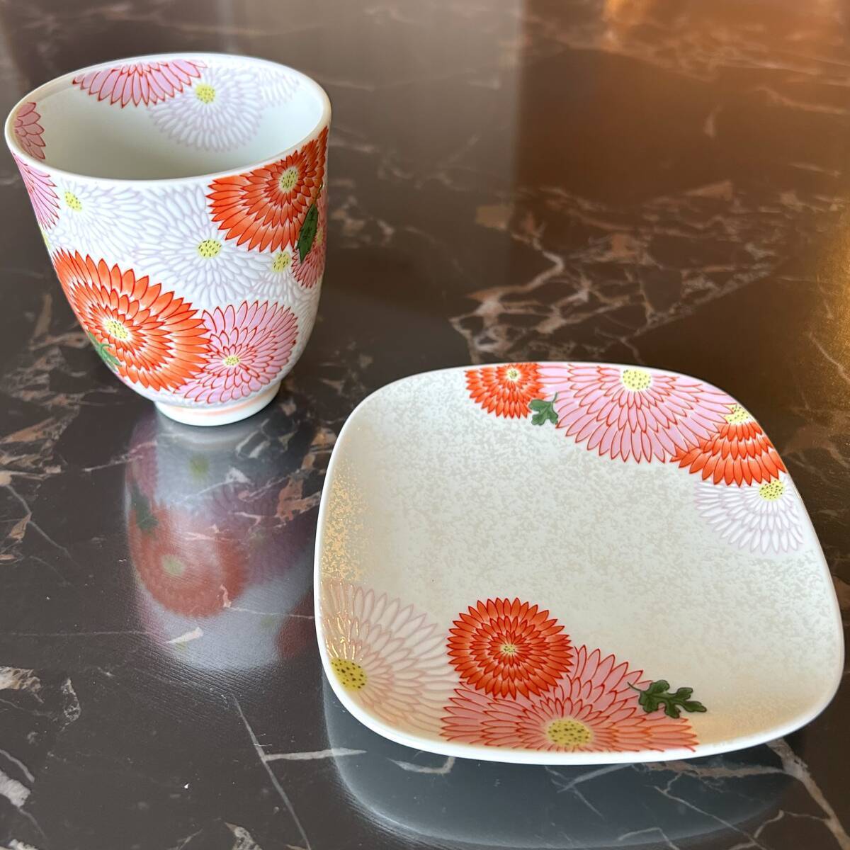 有田焼 幸楽窯 錦銀叩き菊花尽くし 湯呑み&小皿 賞美堂本店 菊 茶器セット