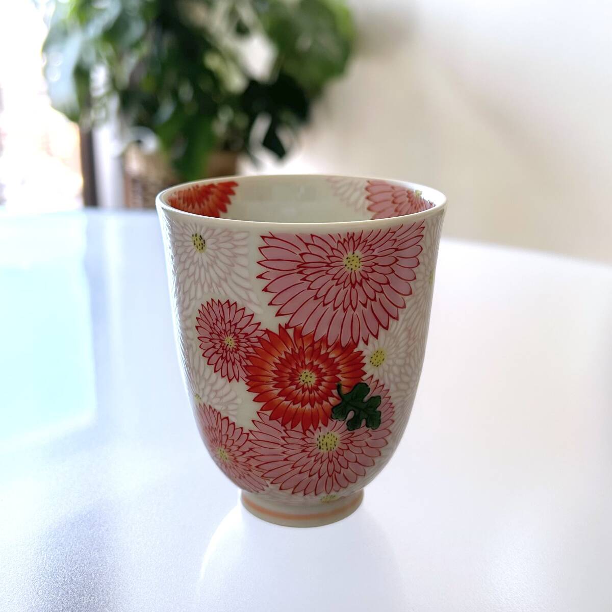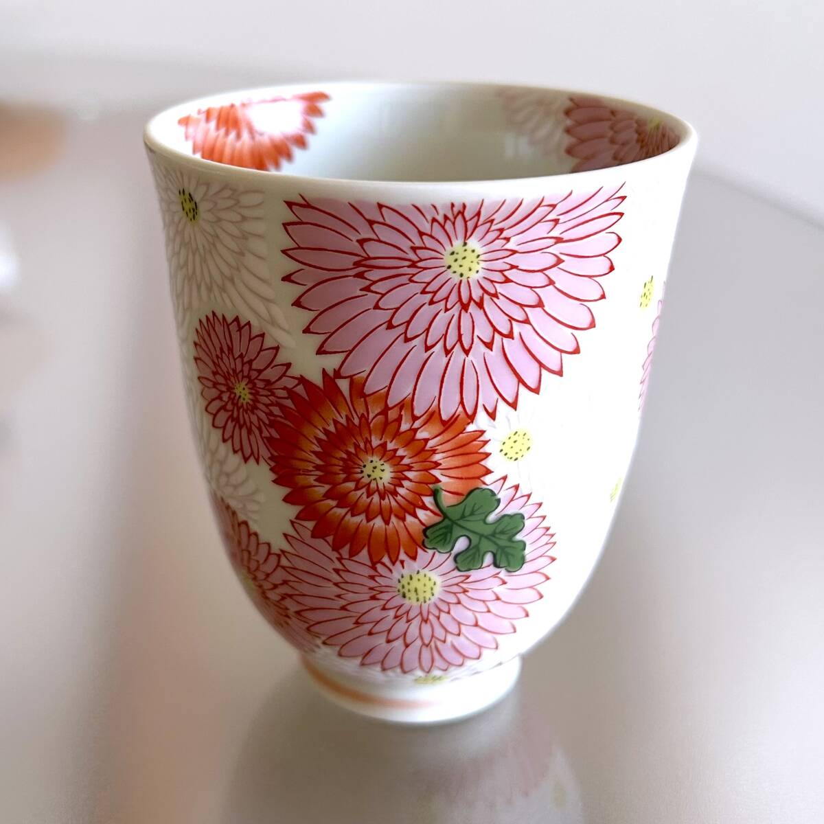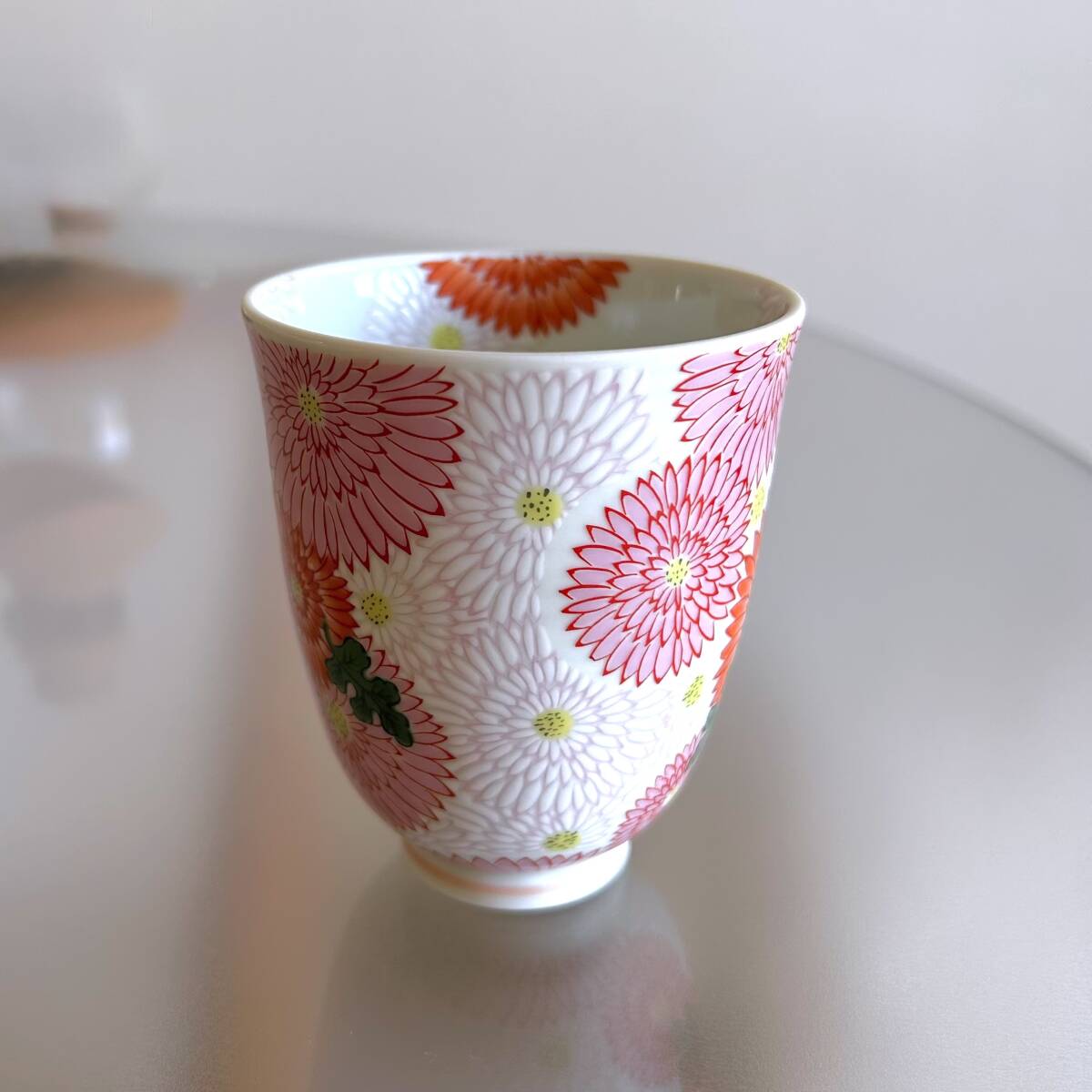 有田焼 幸楽窯 錦銀叩き菊花尽くし 湯呑み&小皿 賞美堂本店 菊 茶器セット