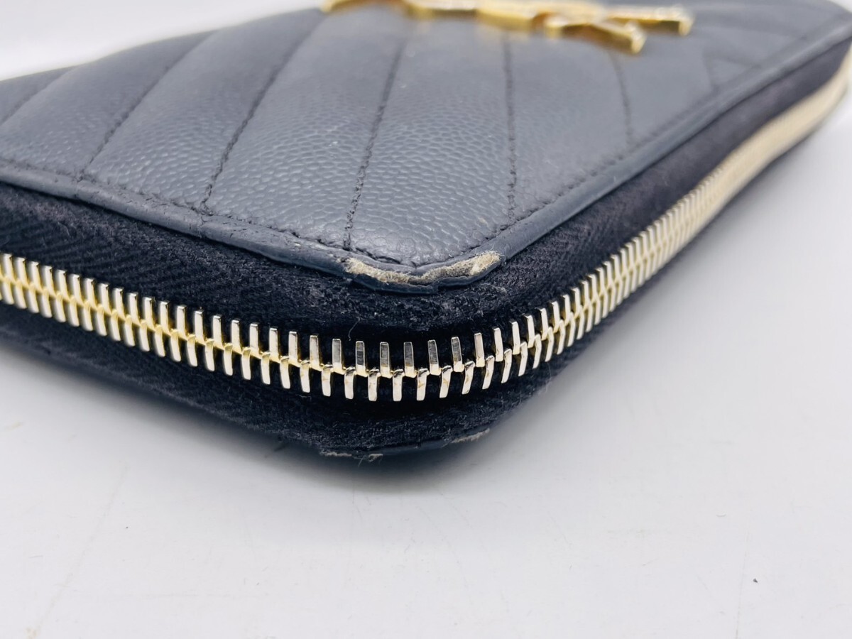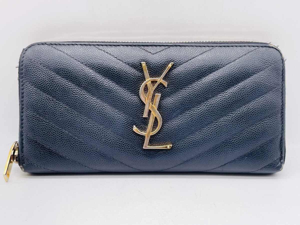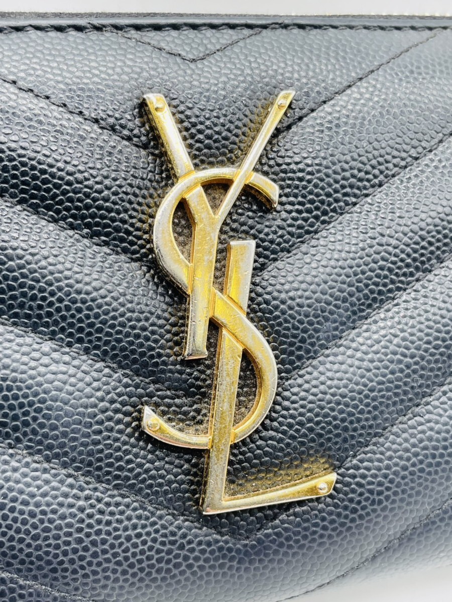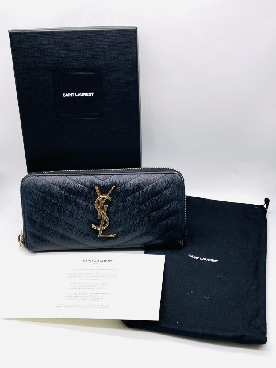 【現状品】SAINT LAURENT 長財布 黒 レザー キルティング YSLロゴ 箱付き ブランド 小物 レディース ファッション ブラック