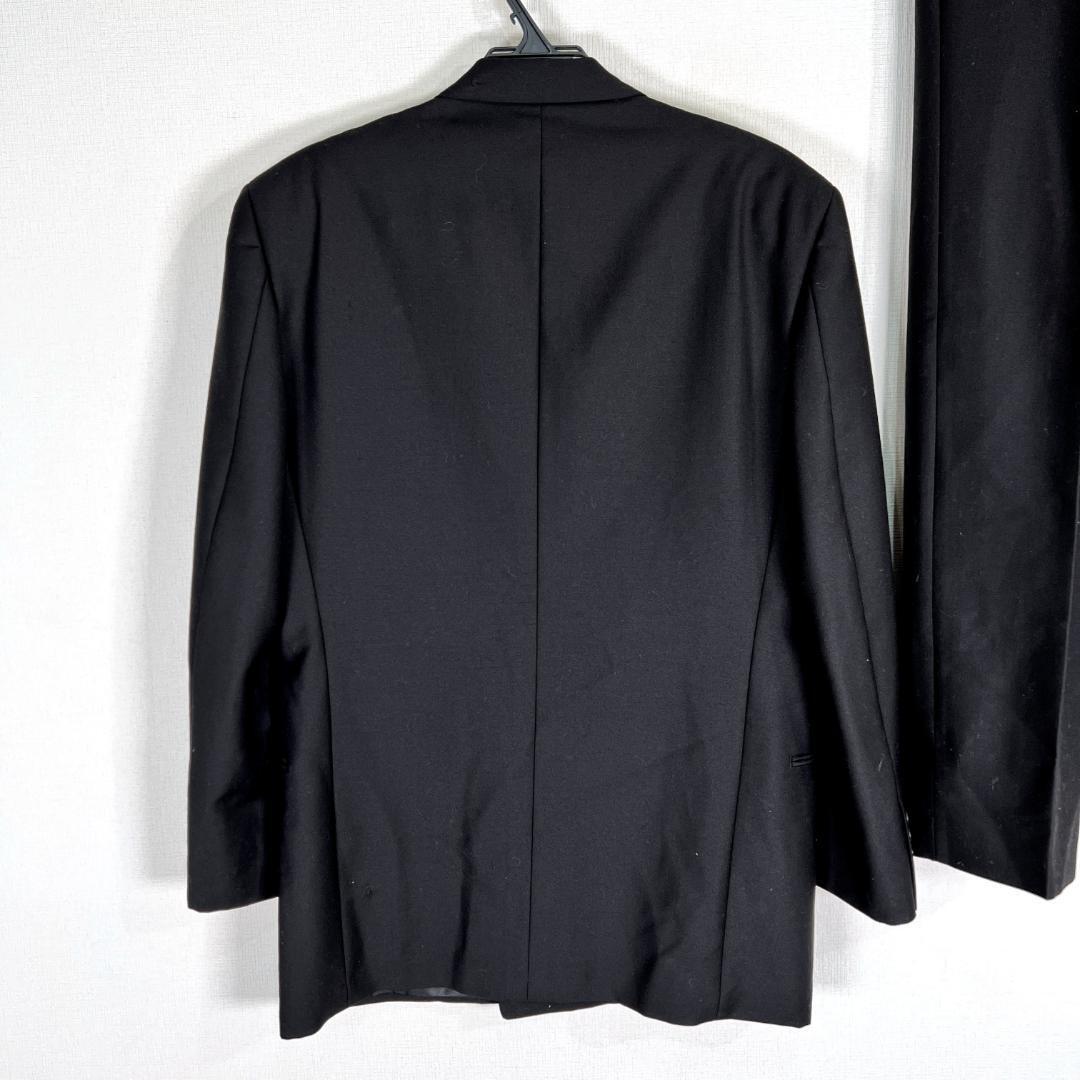 男性用の黒 ブラック系のビジネススーツ ジャケット×パンツスーツ セットアップ 上下セット 2点セットです。中古品ですが目立つ傷や汚れもなく、まだまだ使えます。古着