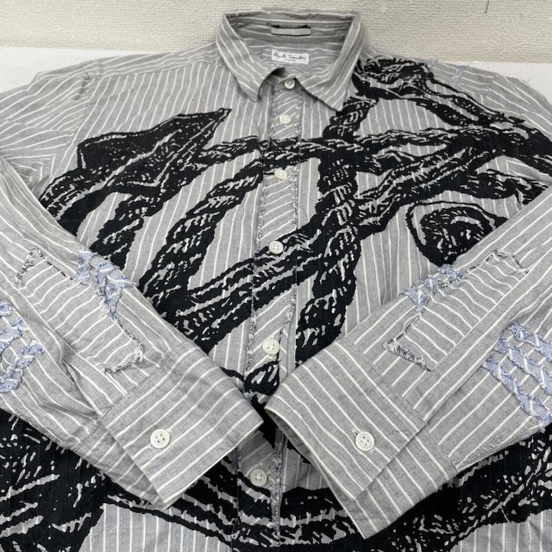 ポールスミス 総柄 長袖 シャツ ブラウス ロングスリーブ ボタン ストライプ 碇 イカリ柄 L