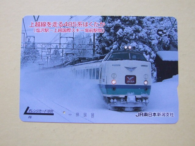 ◇オレンジカード 使用済 多穴券◇JR東日本 新潟支社『上越線を走る485系はくたか(塩沢駅ー上越国際スキー場前駅間)』USED品 009903