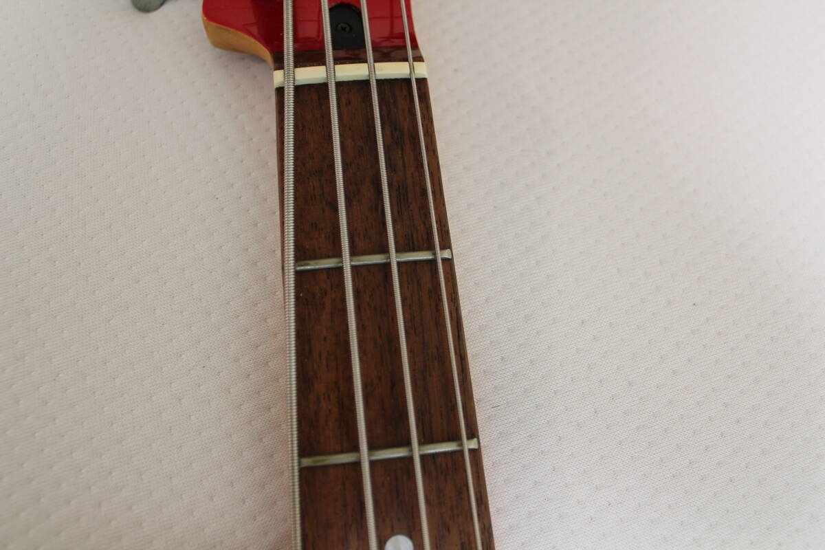 | 1960年代に販売されたSB-7Aのでざいんをもとに現代的にアレンジされたモデル。 アルダーボディにメイプルネック、ローズ指板の仕様。 オリジナルピックアップを2基搭載。 ボディ左下に塗装欠けがございます。 その他細かい擦り傷や打痕、金属パーツのくすみなどはございますが、まだまだお使いいただける一本です。 ―商品説明― 【ブランド】 :YAMAHA 【品番】 :SBV500 【定価】 : 【ボディ】 :Alder 【ネック】 :Hard Maple 【指板】 :Rosewood, 20frets 【スケール】:864mm ロングスケール 【PU】 :オリジナル 【CONTROL】 : Neck&Bridge Volume, Master Tone 【重量】 :3.850kg ―商品状態― 【状態】 :B+ 中古良品 【ロッド残】:締める方向・緩める方向調整可能で±60°まで動作確認済みです。 【ネック】 :演奏上の問題はありません。ストレート 【ナット】:問題なし 【フレット】:約8-9割程度問題なし。 【ボディ】 :キズ、弾きキズがあり 【電装系】 :音出し確認済み。特に問題なし。 【弦高(12F計測)】:4弦 2.25mm 1弦 1.75mm セットアップ済み(クリーニング済、ロッド調整・オクターブ調整・弦高調整・PU高さ調整)弦は45-105 12Fの弦高は4弦 2.25mm 1弦 1.75mmで調整してあり、ネックはおおむねストレートです。フレット山は演奏に問題ない高さがあり、トラスロッドは締める方向・緩める方向調整可能で±60°まで動作確認済みです。 | |||