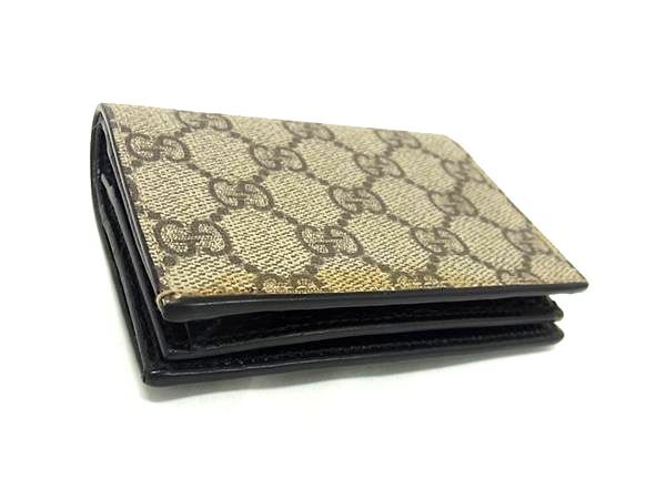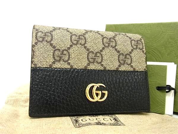 1円 ■美品■ GUCCI グッチ 658610 ダブルG GGマーモント GG柄 PVC×レザー 二つ折り 財布 ウォレット ベージュ系×ブラック系 FU2617