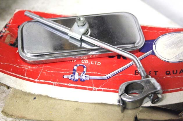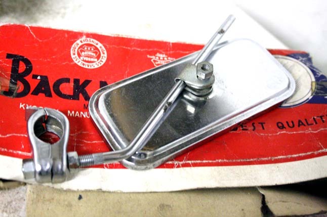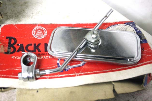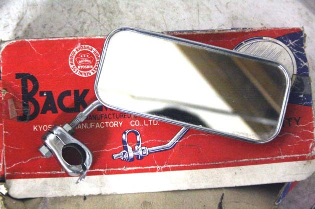 60sの当時の新品美品、オリジナルのままの、鉄にメッキ製のバックミラーです。