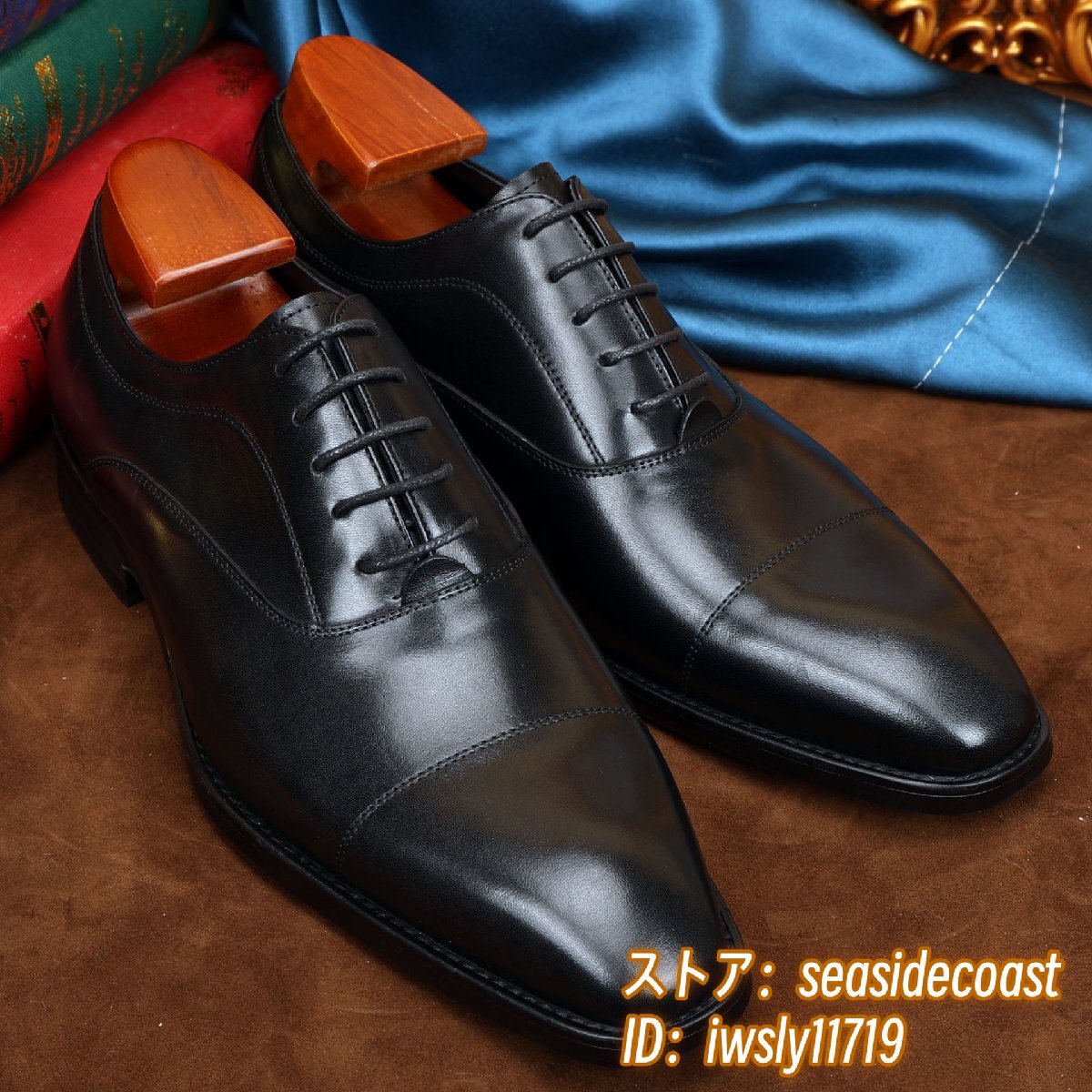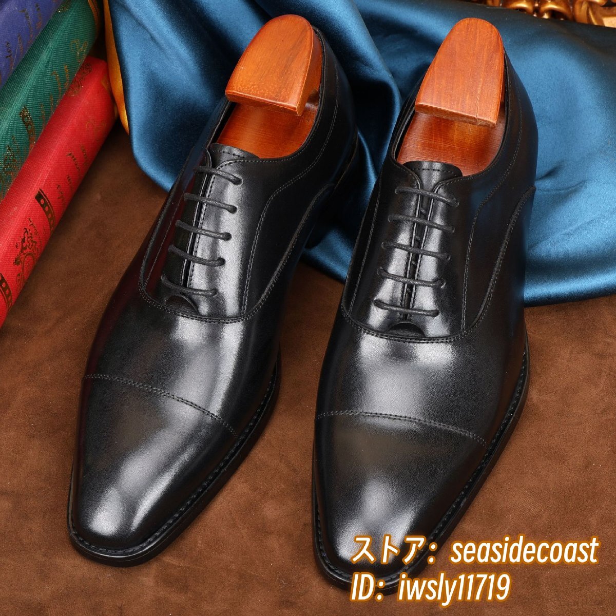 定価10万超★最高級 レザーシューズ 本革 メンズ ビジネスシューズ 牛革 イギリス風 職人手作り 紳士靴 革靴 結婚式 宴会 ブラック 25.0cm