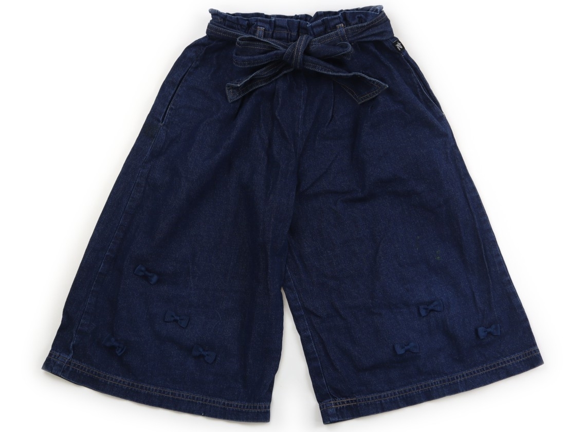 サイズ調整ゴムが付いています。右腰ポケット下に黄色っぽいシミと、左足リボン上あたりに黄緑の汚れがいくつかあります。ストレッチはありません。