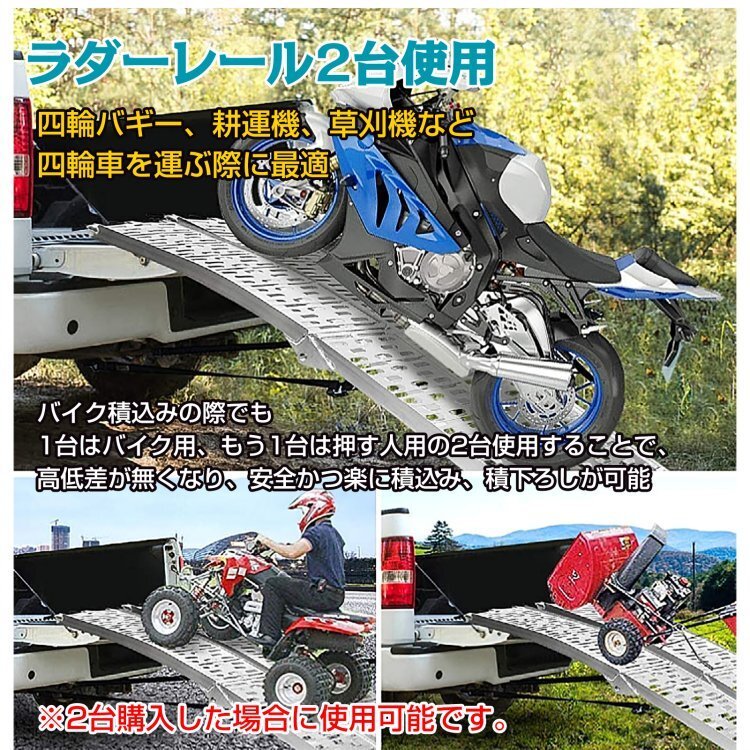 ラダーレール 農機具 折りたたみ 2個セット 二つ折り 軽量 アルミブリッジ アルミスロープ ベルト付き 歩み板 バイク オートバイ ny477a