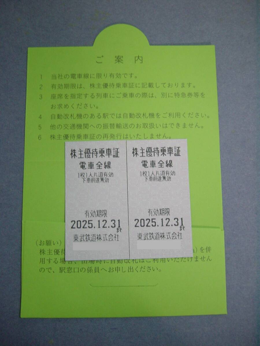 | ★☆東武鉄道 株主優待乗車証 2枚 2025年12月31日まで 送料無料☆★ | |