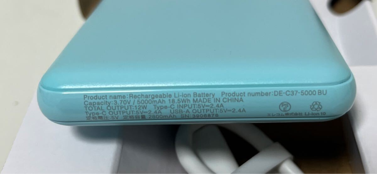 710i0504 エレコム モバイルバッテリー 5000mAh 12W コンパクト 薄型 軽量 入力(Type-C×1) 出力(Type-C×1、USB-A×1) PSE認証